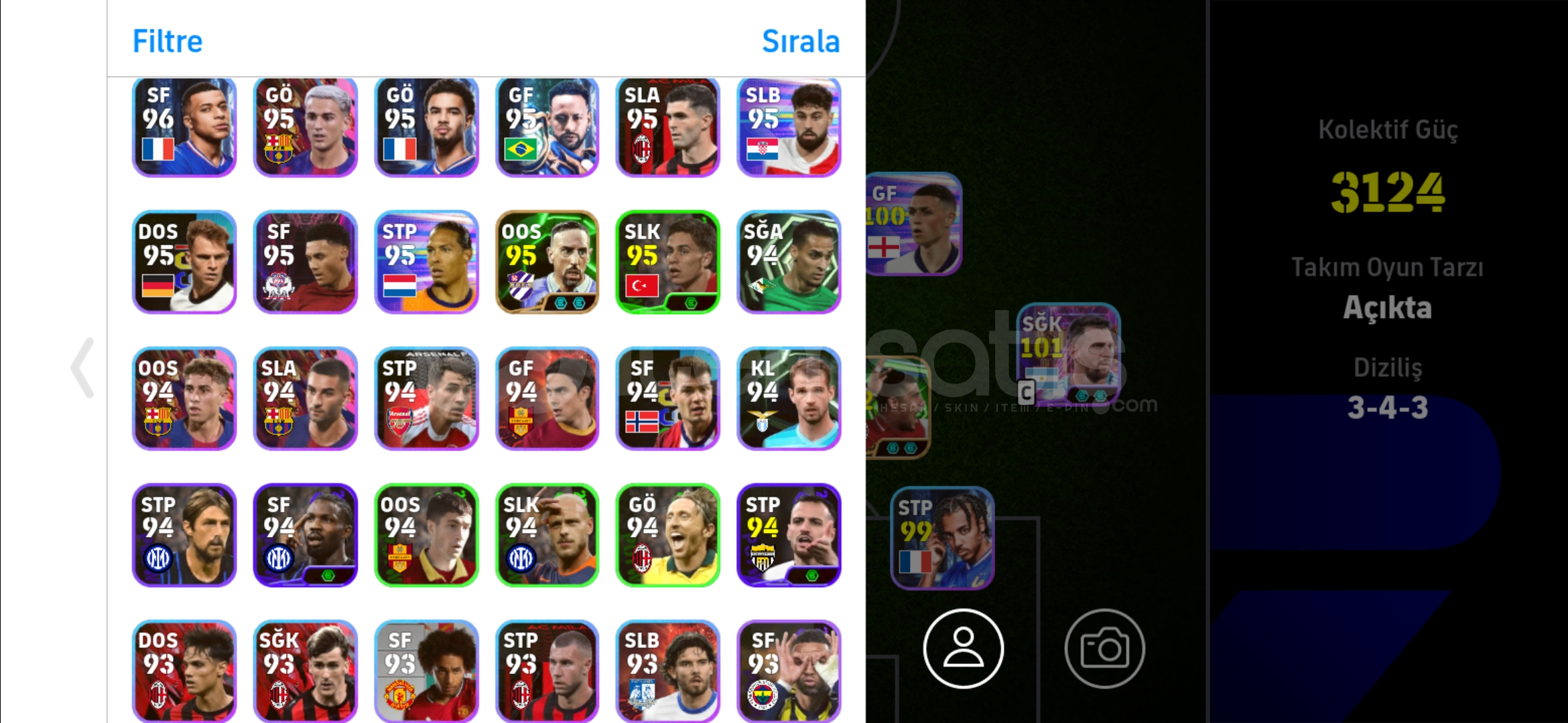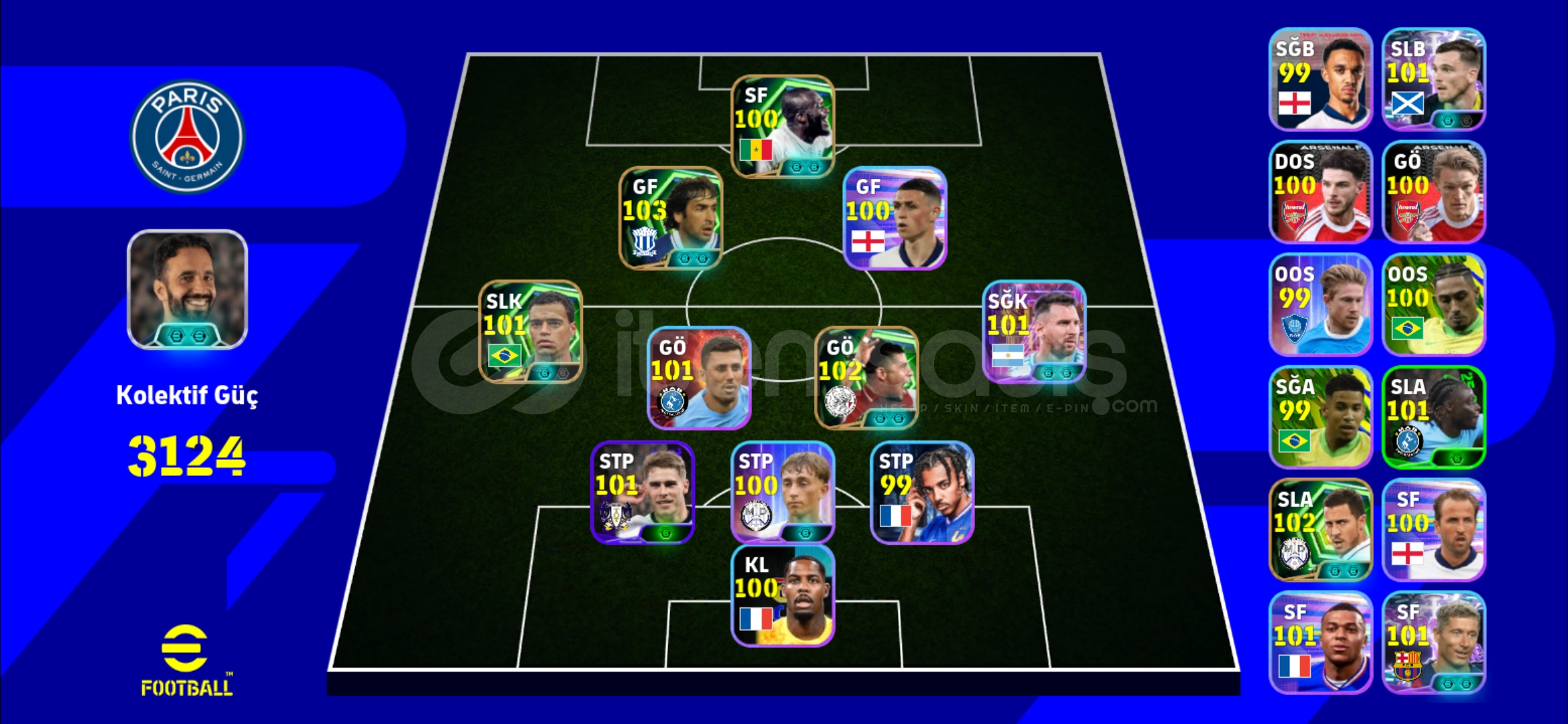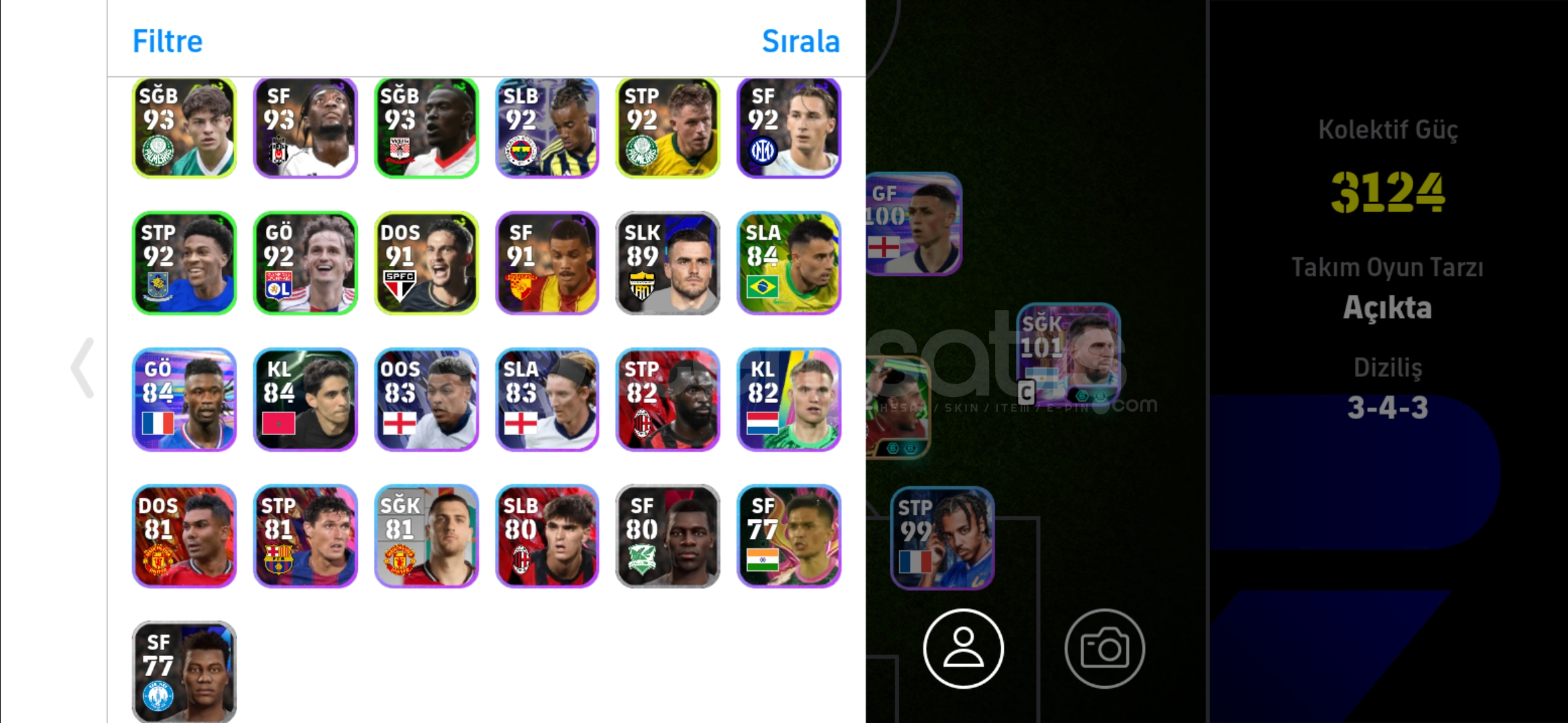 GÜÇLENDİRİCİSİ BASILMAYAN OYUNCULAR MEVCUTŞU AN 3124 KG TEK BAĞ KONAMİ İD HESAPTA 760 MC MEVCUTFOTOĞRAFLARDA HERŞEY MEVCUT DETAYLI BİLGİ İÇİN YAZABİLİRSİNİZ