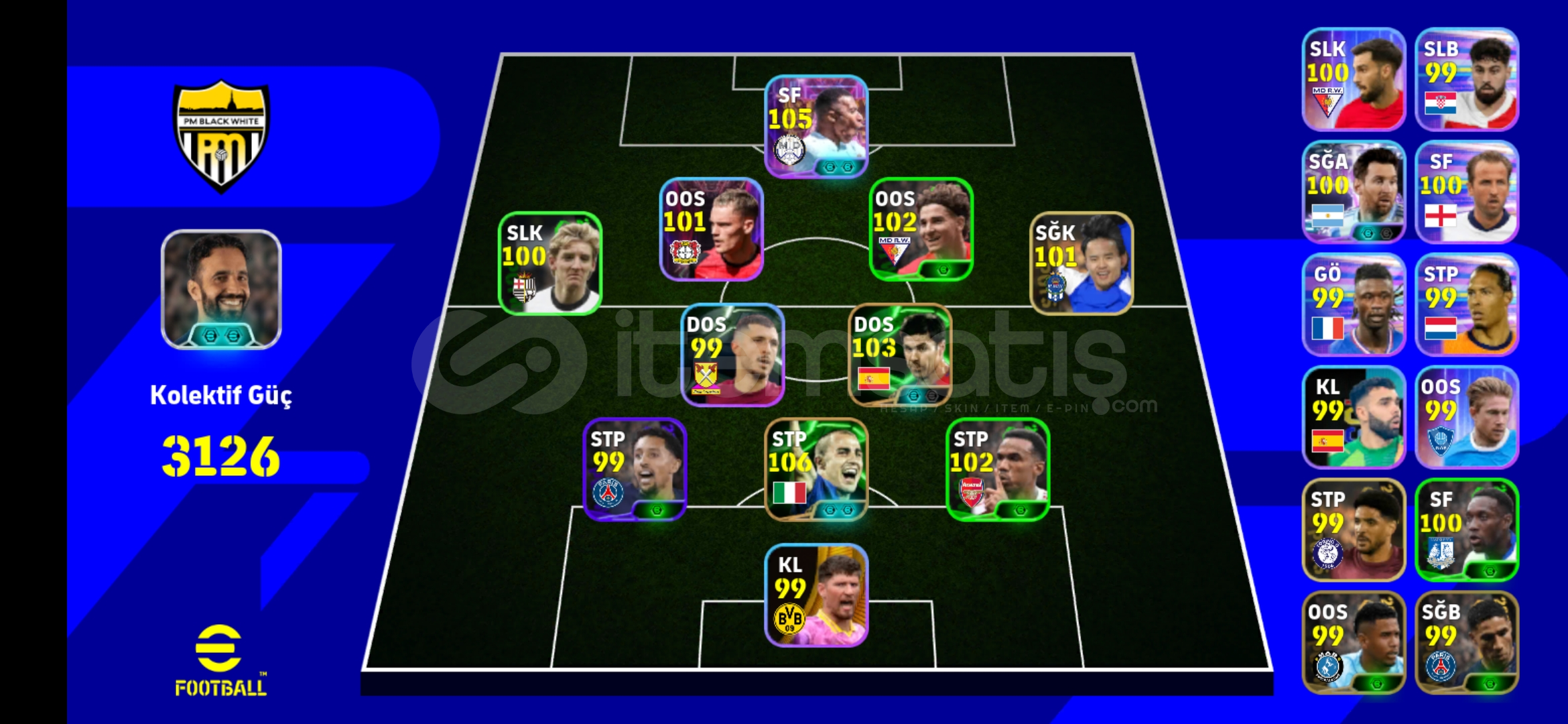 Tek bağ dırHesapta 105 mbappe 106 cannavaro 104 Alonso ve bir sürü güçlü renkli kartlar varCiddi alıcılar varsa pazarlık olur