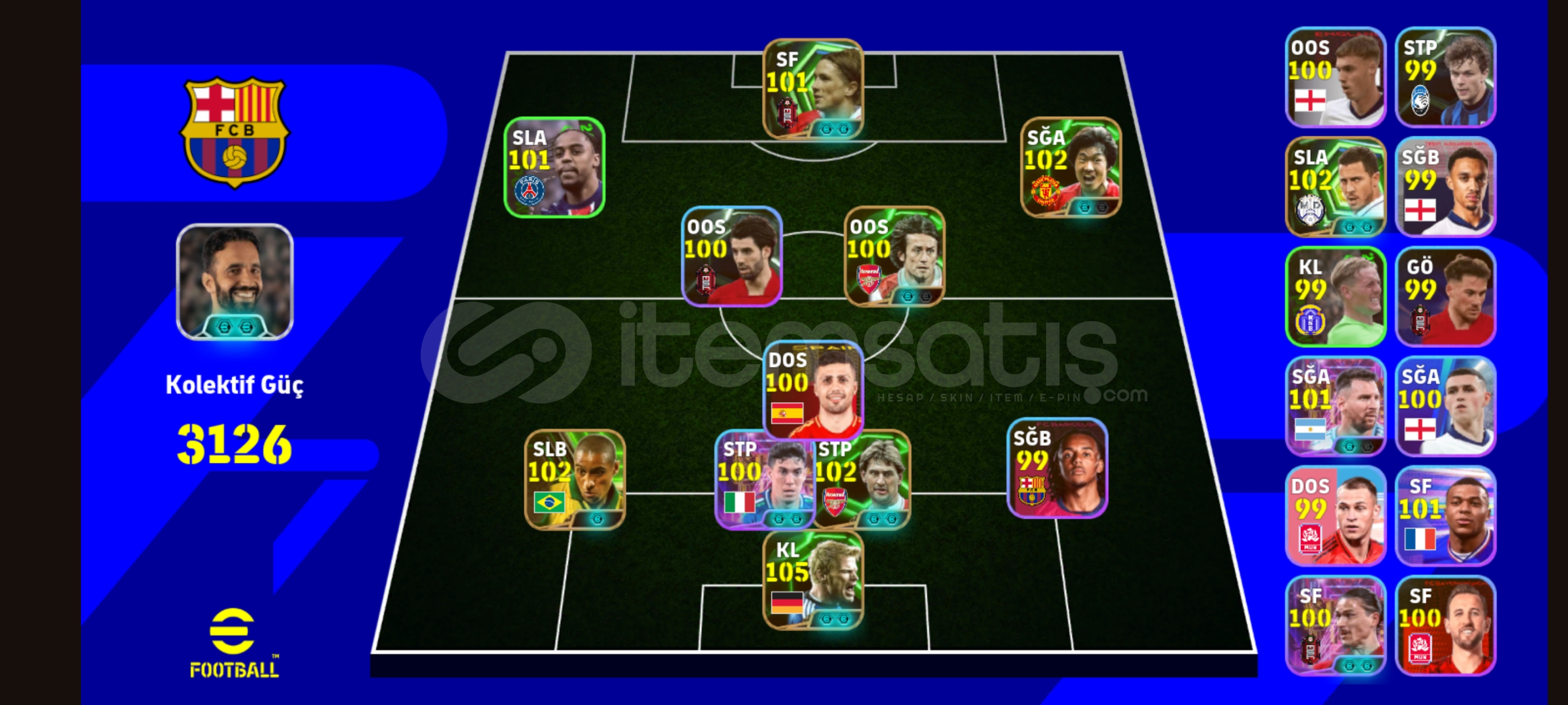 Güzel iyi hesap 3126 kolektifli hesap 105 kahn 102 Carlos 102 Torres 102 Park ji sung 102 hazard 100 rosicky