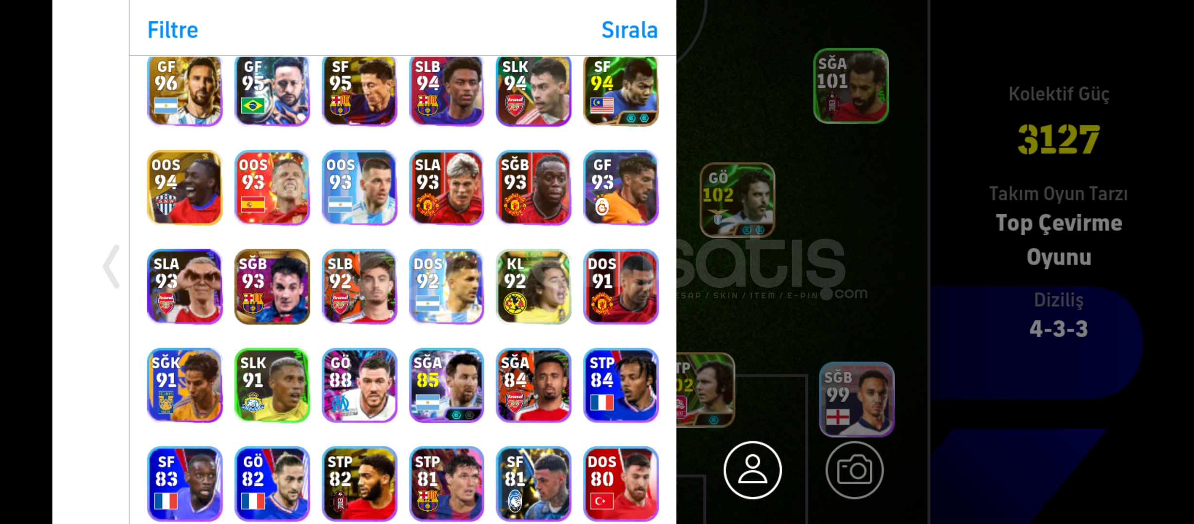 103 HAALAND102 FİERO104 BARESİ 102 BECKENBAUER102 HAZARD 3.KLASMANTek bağ Mail değişim