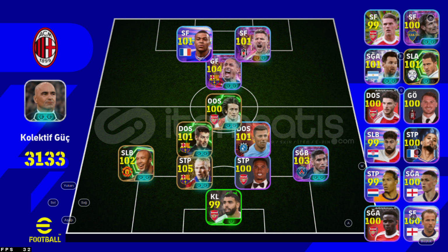 • HESAPTA 104 SHOWTİME RAPİNHA+105 KOEMAN+2 GÜÇLENDİRİCİLİ TD+101 İMMOBİLE+103 HAKİMİ VARDIR DOLU DOLU OYUNCULAR