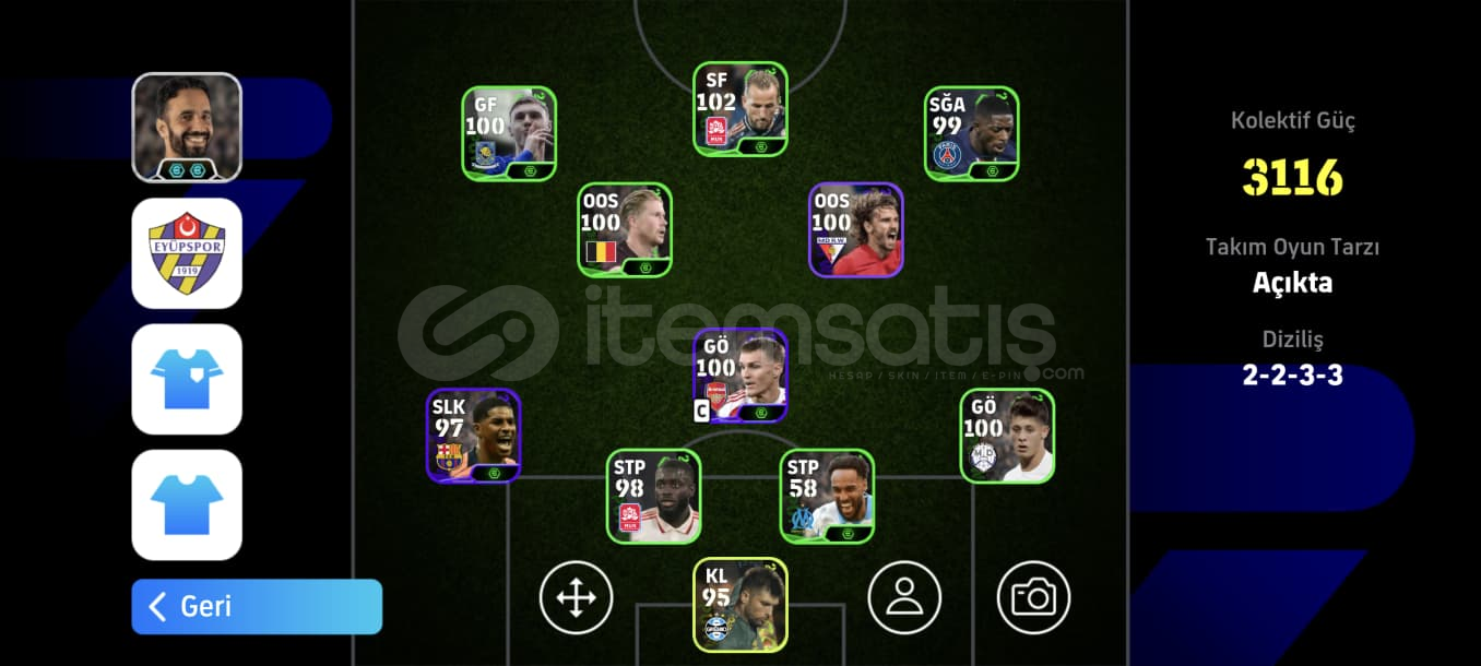 Hesap gördüğünüz gibidir Tek bağdır Rezervi idare eder full potw kadro bile oluşabiliyor Güzel sağlam iyi epicler vardır 2 adet özel menejer vardır