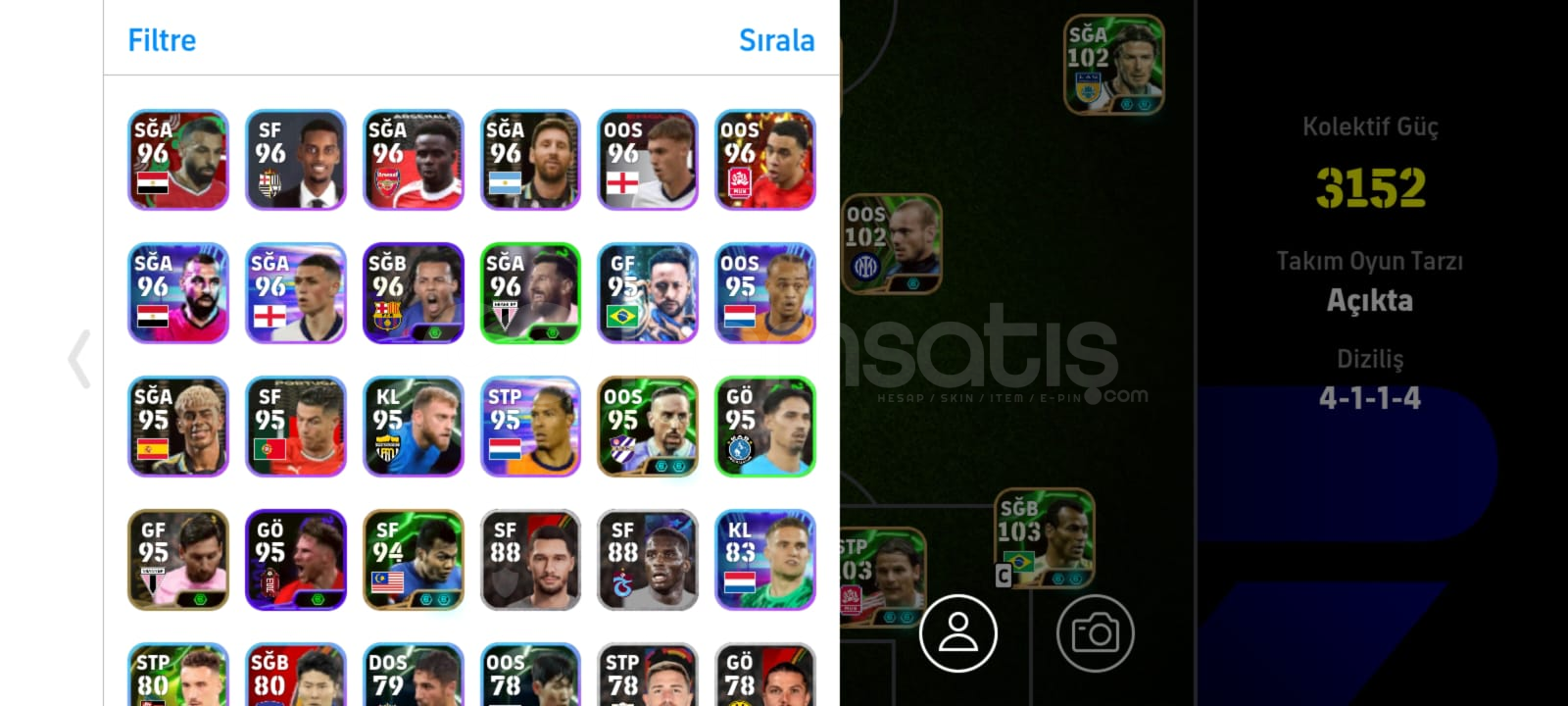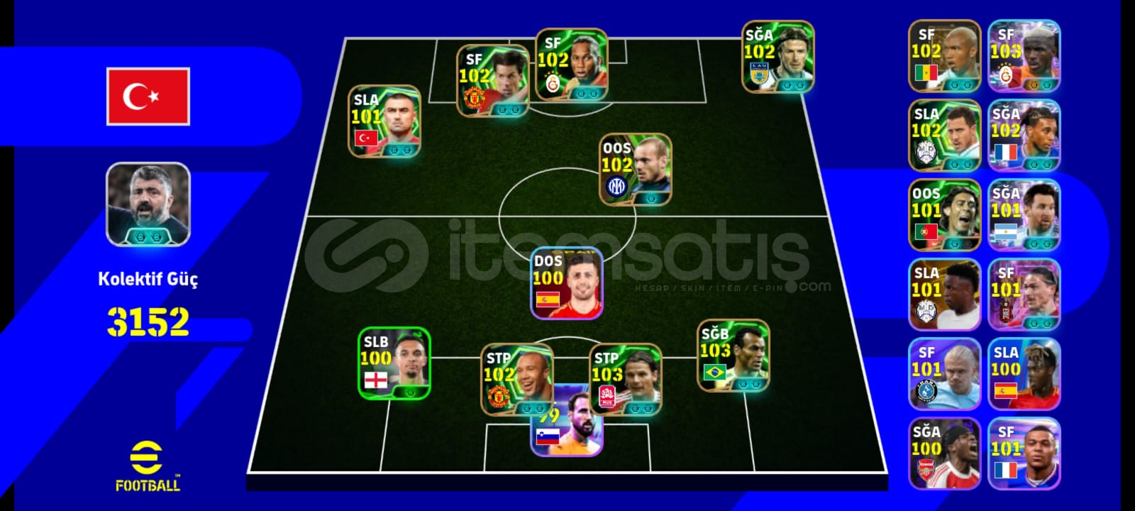 Tek bağ konami id bağlıdır sizin mailinizle değiştiriceğim.değerli kartlar bulunmakta emek hesabım kendim oynadım sadece3152 kg 4 menejer stadyum forma kadro resimlerde mevcuttursorular için yazabilirsiniz2 Bombacı Burak Yılmaz,Olise