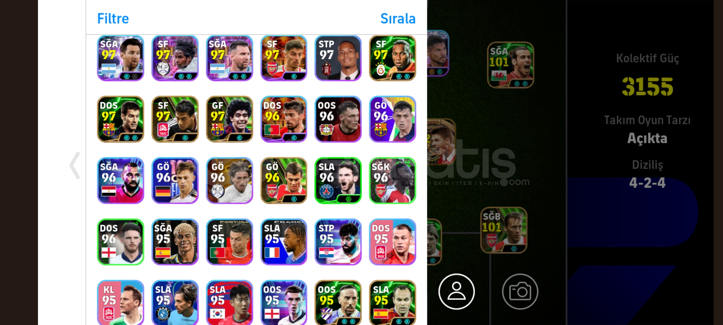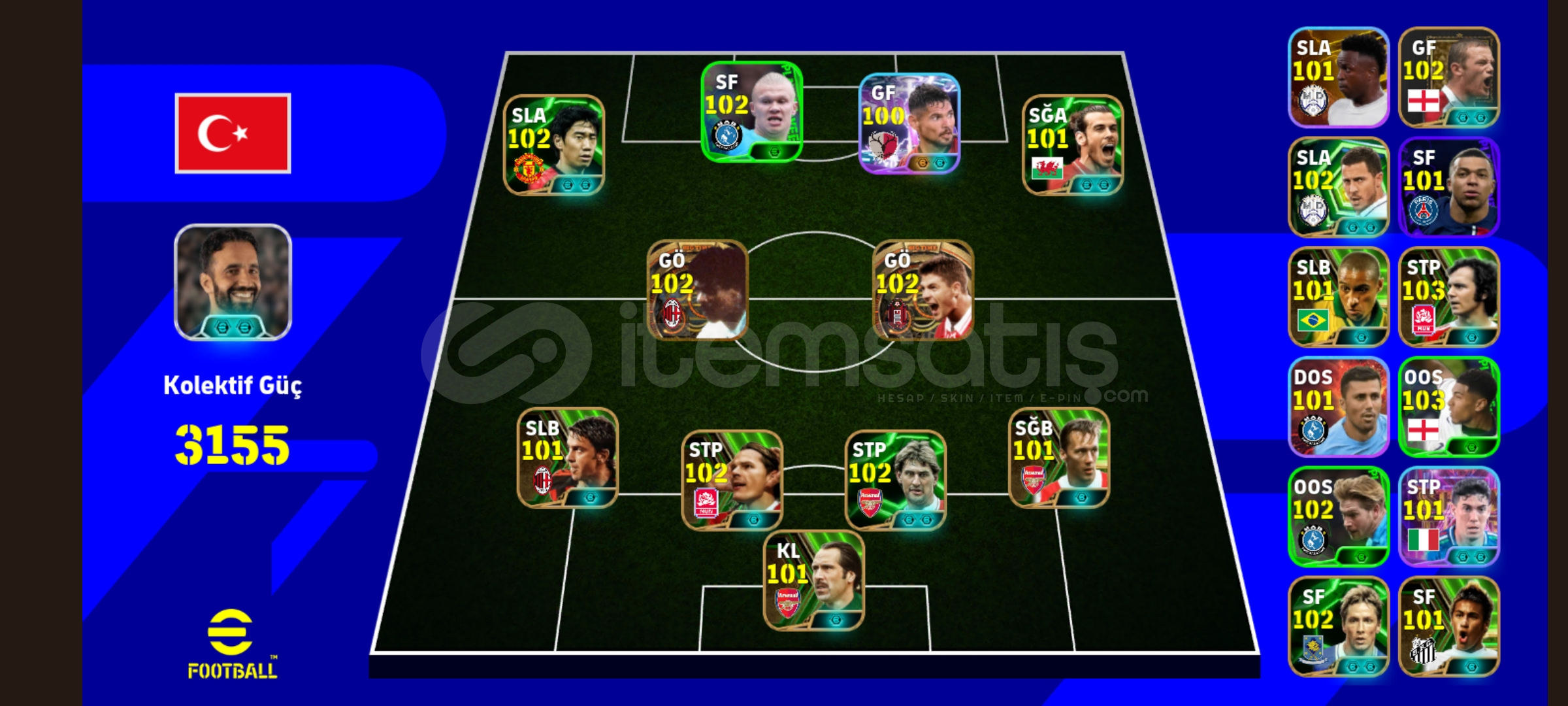 🎮 EFOOTBALL 2025 GÜÇLÜ HESAP – 3155 TAKIM GÜCÜ – 650 TL🔹 Takım Gücü: 3155🔹 Diziliş: 4-2-4 (Açıkta Oyun Tarzı)🔹 Birçok 100+ OVR oyuncu mevcut!Haaland (102)Bale (101)Van büyüten (102)Tony adams (102)Daha birçok 101–103 rating’li efsane ve özel kart🔹 Yedeklerde ve kulübede birçok yüksek rating’li oyuncu (94–103 OVR)...