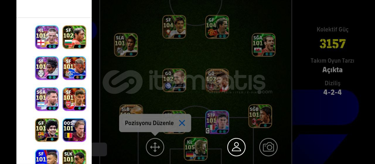 EFOOTBALL PES MOBİLE 3157 KG MÜKEMMEL HESAP DETAY İÇİN YAZABİLİRSİNİZ.