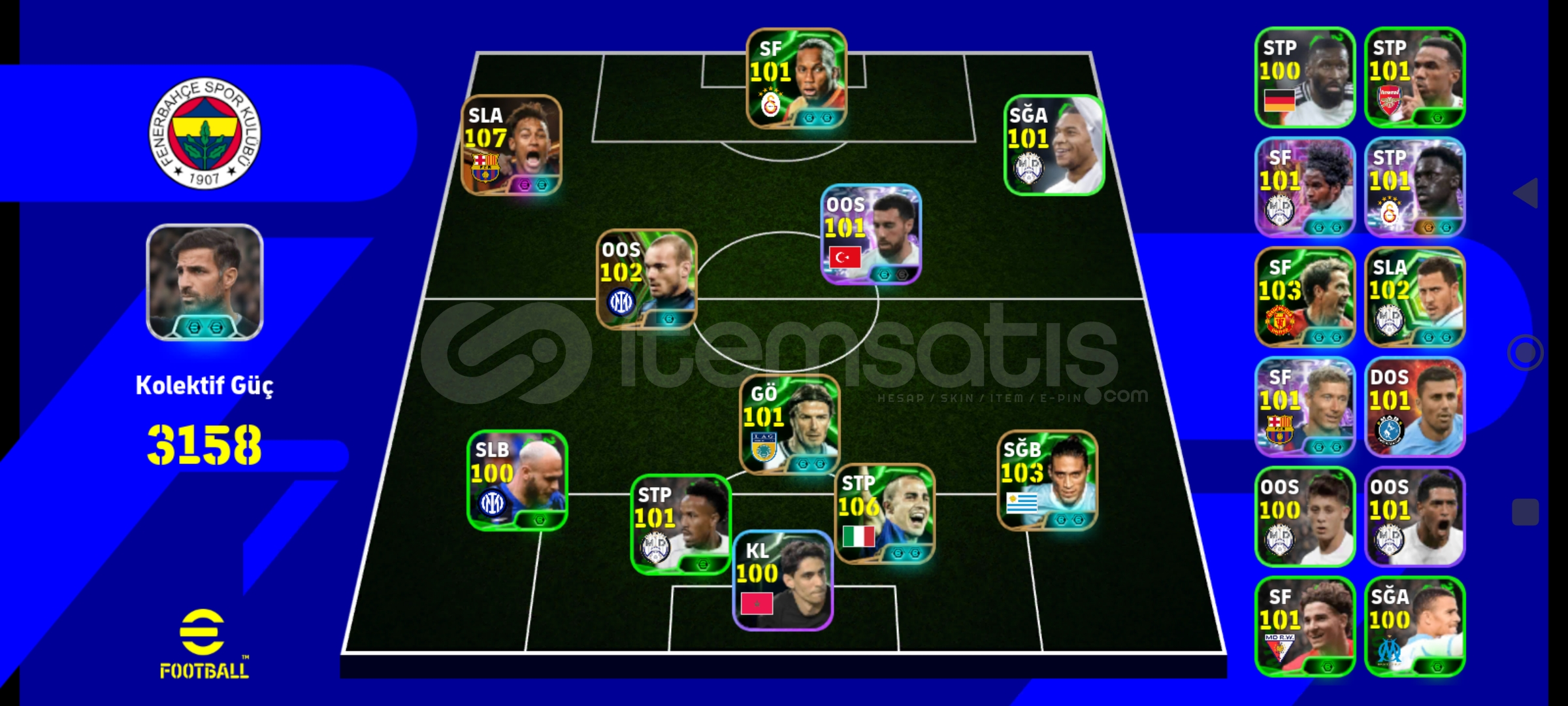 3158KG tek bağ 107 Neymar 106 cannavaro 102 Sneijder 101 Orkun 103 Michael owen 102 hazard 101 sanchez ve dahasi