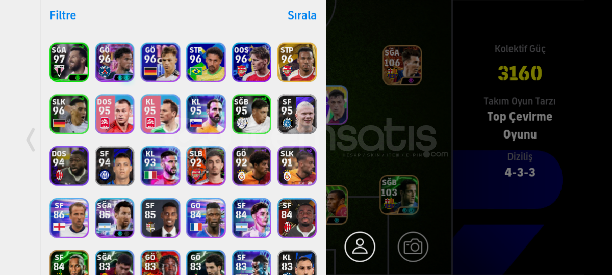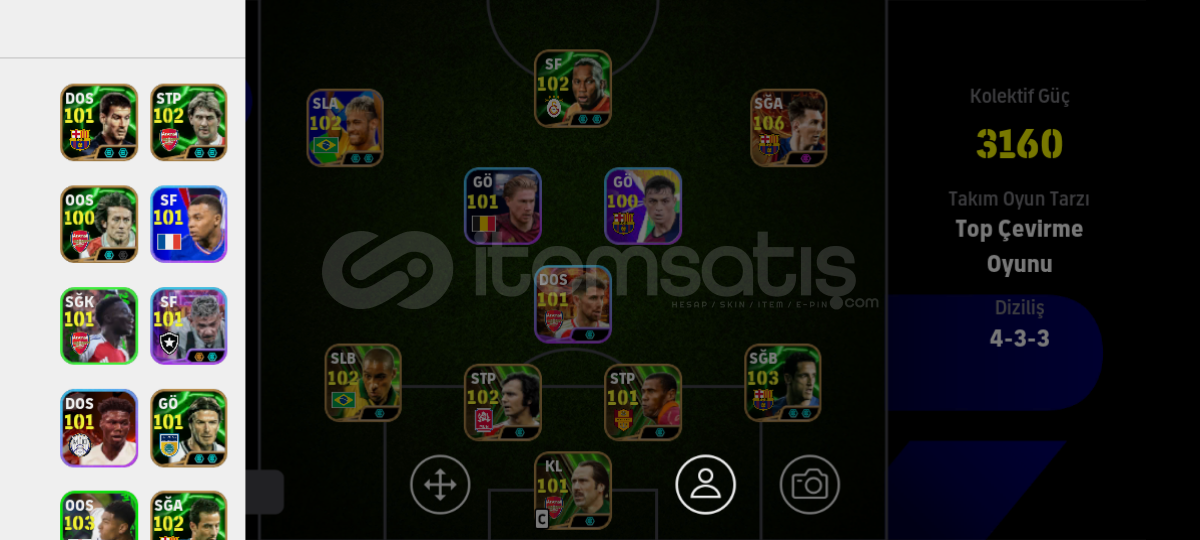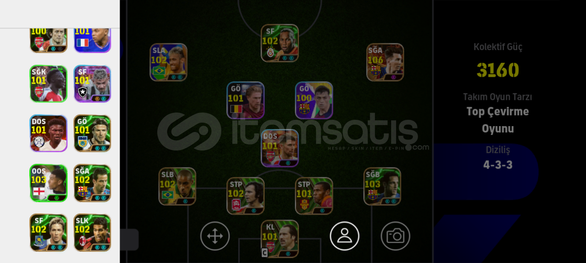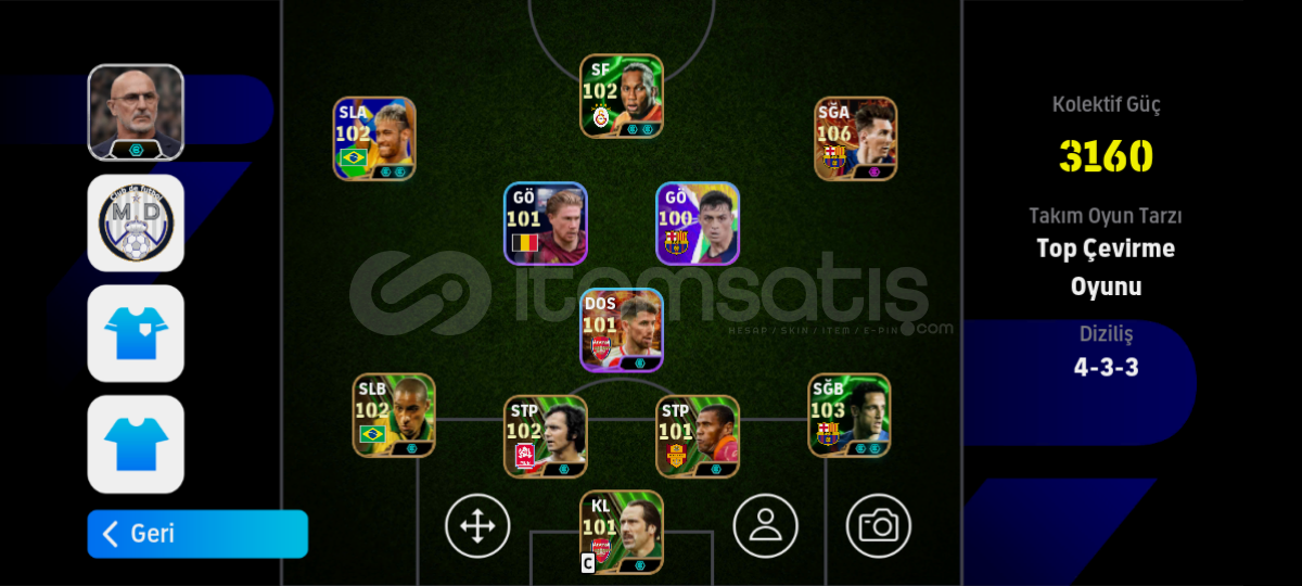 Hesapta Brezilya paketi alnimis 102 Neymar 106 Messi gibi önemli isimler var 2 tane güçlendiricili menajer bulunuyor