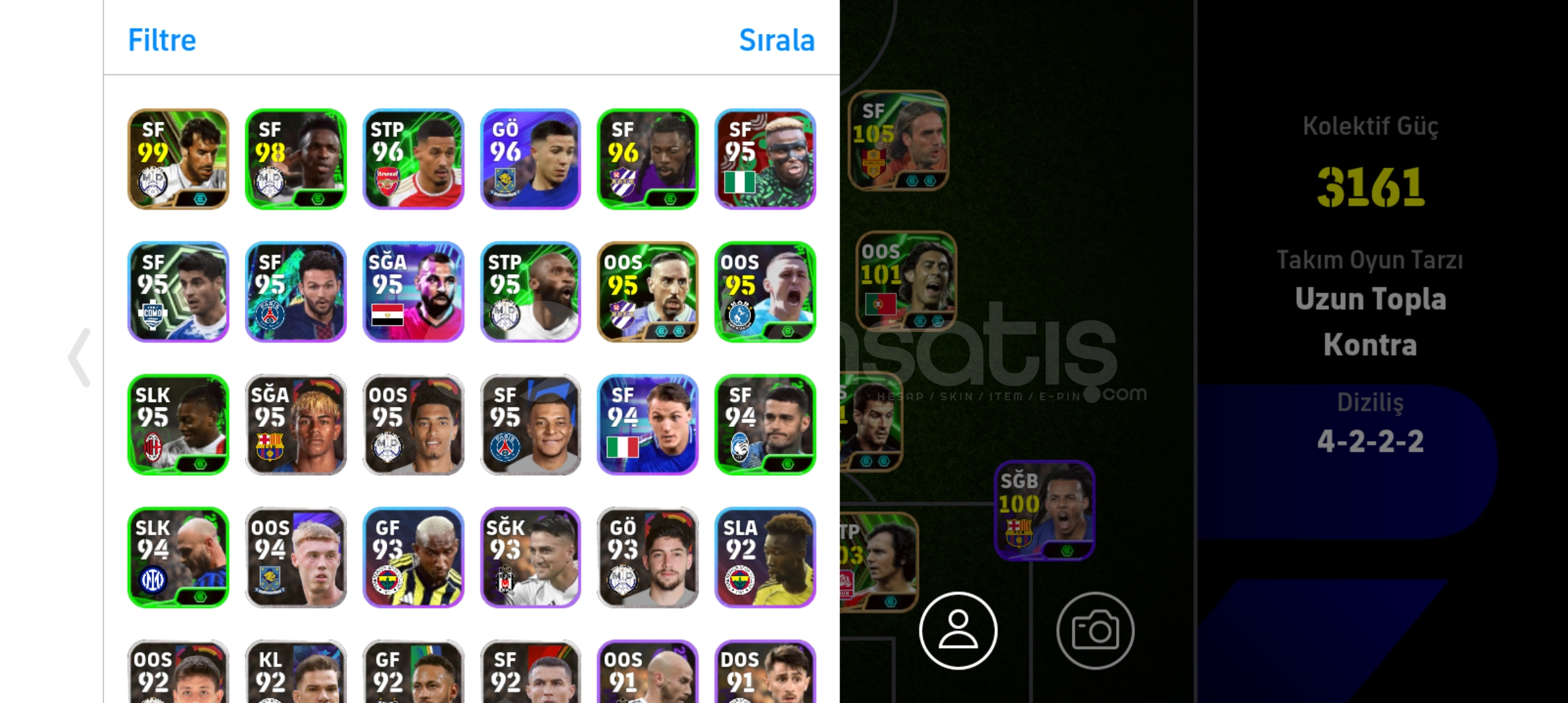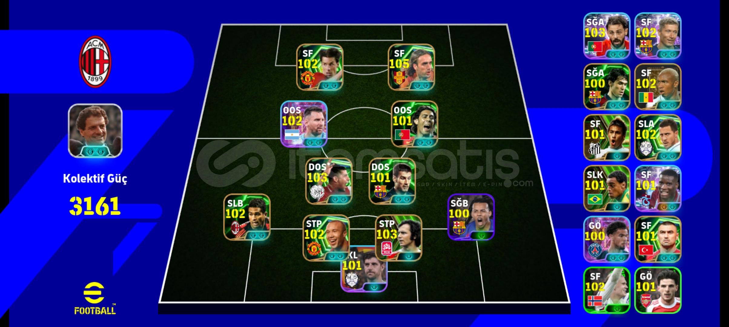 Fabio Capello | Gattuso | Fabregas Güçlendiricili Menajerler-105 Batistuta , 103 Nistelrooj , Toplam Paket 104 Onuachu (Sadece Süperlig oyuncuları ile 104 oluyor)Ağ Delen Kafa (Onuachu)Yer Füzesi (Batistuta)Eski Kartlar Dahil Teklif Hesabıdır Dmden Teklif EdebilirsinizİLAN SATILIK DEĞİLDİR! ALMAYINIZ TEKLİF İLANIDIR