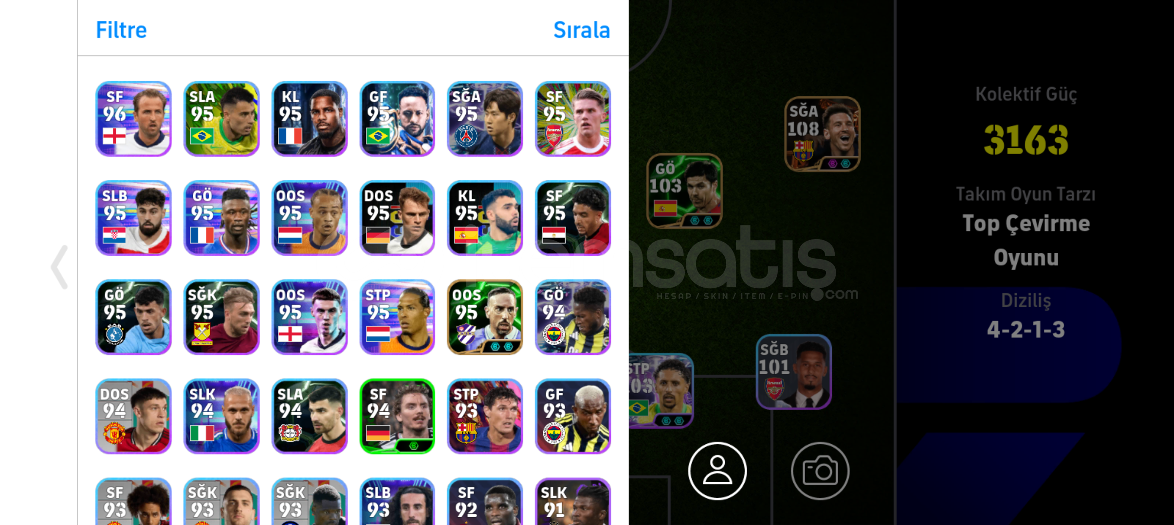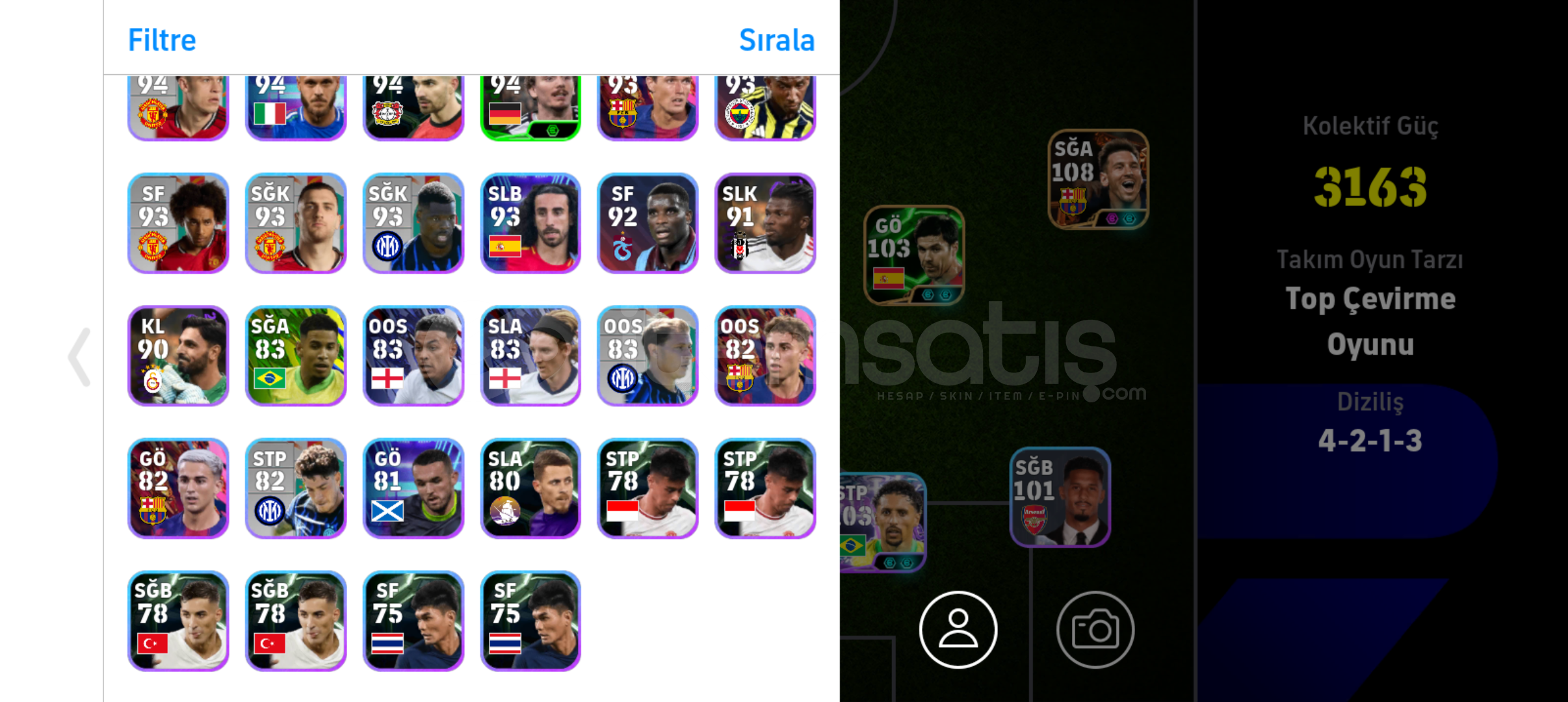 Hesap bizzat benimdir içinde birçok önemli oyuncu bulunmakta 3 adet teknik direktör ve bir çok etkinlik için farklı Lig ve kulüpten oyuncular vardır -108 Messi(bombacı)-106 Cannavaro -103 park ji sung(pike yapan orta)-103 rijkard ve xabi alonsoHesabı alan kişi Max 3 saat içinde teslim alıcaktir büyük ihtimalle hemen teslim alır şimdiden alan olursa hayırlı olsun