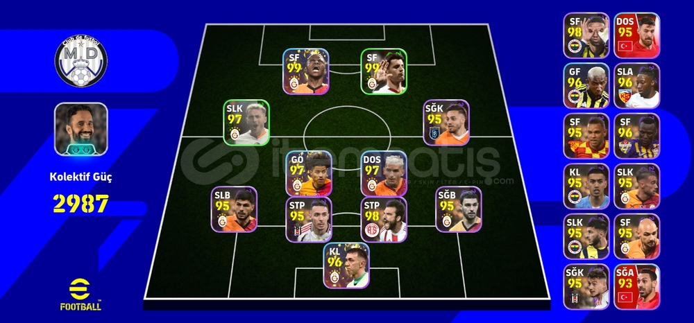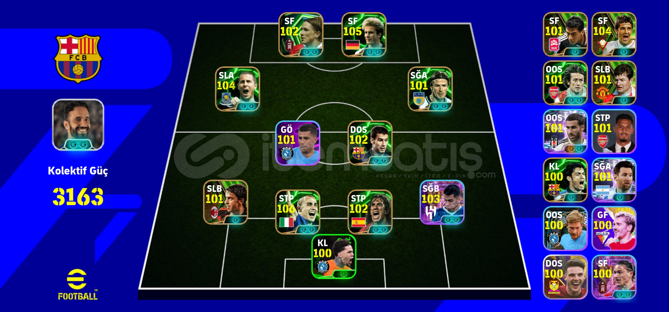 🔥 105 Rummenigge, 106 Cannavaro, 104 Eden Hazard, 104 Rafa Silva ve niceleriyle dolu güçlü bir eFootball mobilehesabıdır.