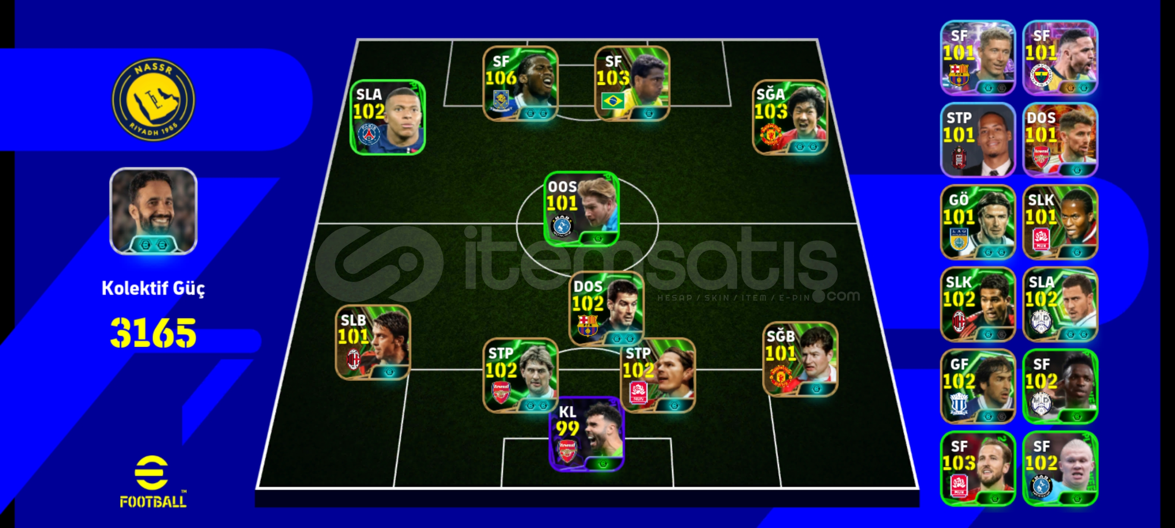 Bu fiyata daha iyisi yok100 messi haftanın takımı99 Ronaldo haftanın takımıNadir dolu hesapEksi Mc yok99 icradi 99 Abraham 101 ennesry