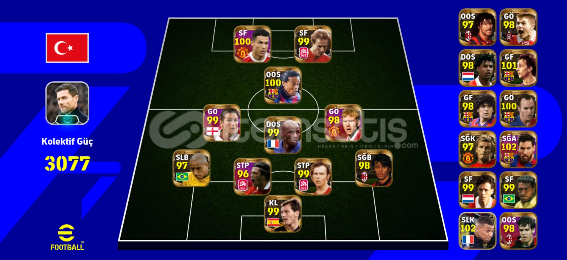Hesapta neredeyse bütün ikon kartlar var. Toplam 52 tane ikon kart 22 tane epik kart mevcut. D. Forlan, F. Torres, Cannavaro, T. Rosicky, F. Baresi vb. epik kartlar da bulunuyor. İnanılmaz keyifli ve tatlı bir hesap nostalji sevenler kaçırmasın. Tek bağ.