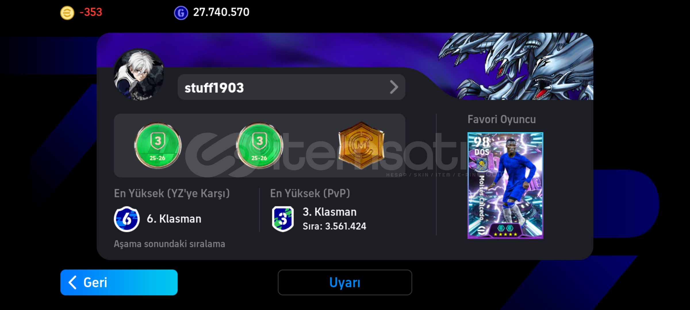 Giriş hakkı mevcut olmayan hesapların satışı KESİNLİKLE yasaktır. Lütfen bu şekilde bir ilan tespit ettiyseniz canlı desteğe bağlanarak lütfen bildiriniz.