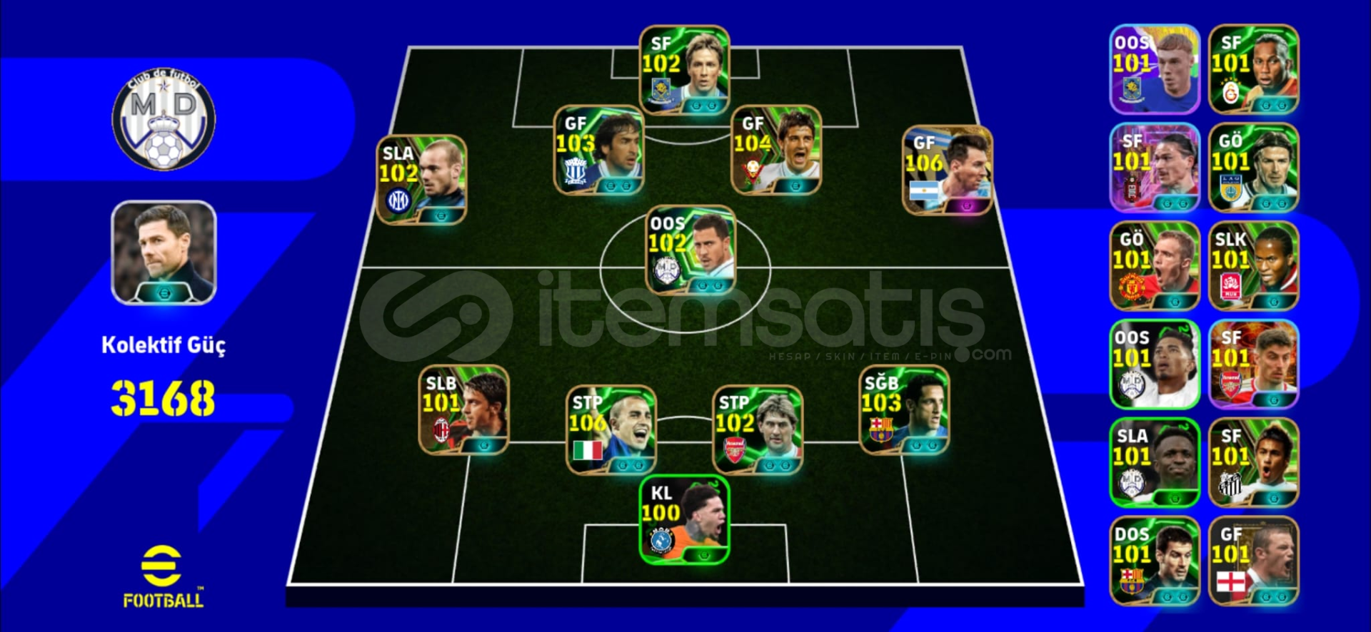 3168 Kg Pes Hesabı106 Messi104 David Villa 102 Sneijder102 Eden Hazard103 Raul 103 Belletti 106 F.Cannavaro