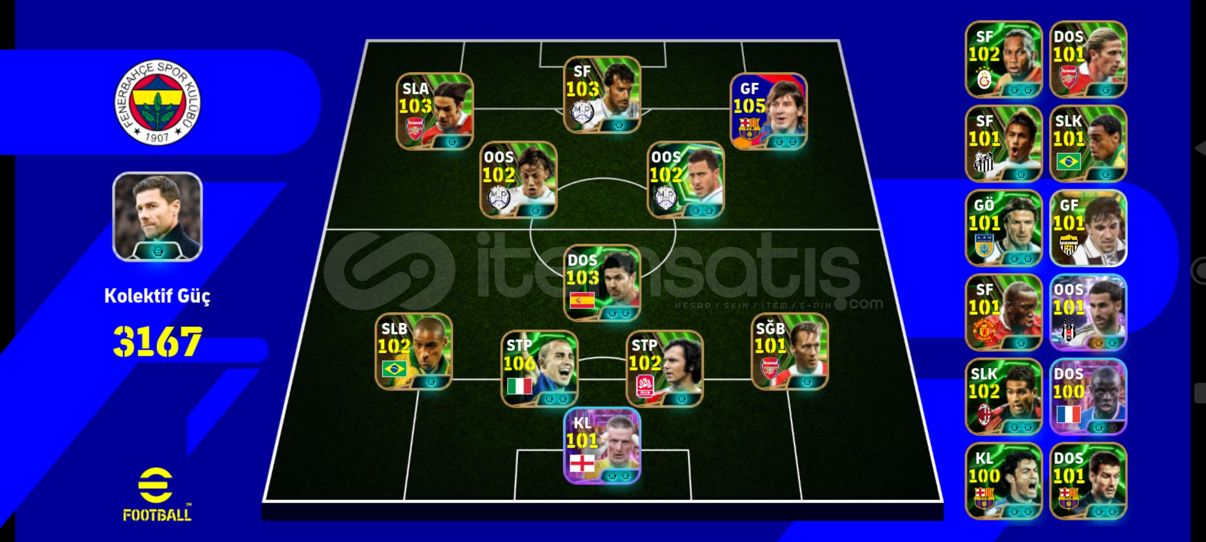 3168KG 105 Messi 103 pires 106 cannavaro 101 rafa Silva 103 SF 102 hazard 103 alonso 101 danilson ve dahası tek bağ