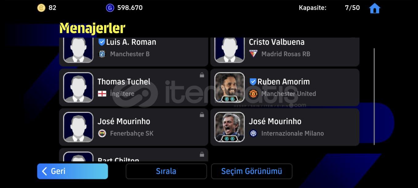 Hesap gördüğünüz gibidirTek bağdırRezervi ortalamadırJose morinho hızlı kontratak menejeri vardırGüzel sağlam kartlar vardır💯 Güven & Tecrübe:180+ başarılı işlem ve 10/10 müşteri puanı ile güvenle alışveriş yapabilirsiniz. Teslimatta ekran kaydı açmak zorunludur.