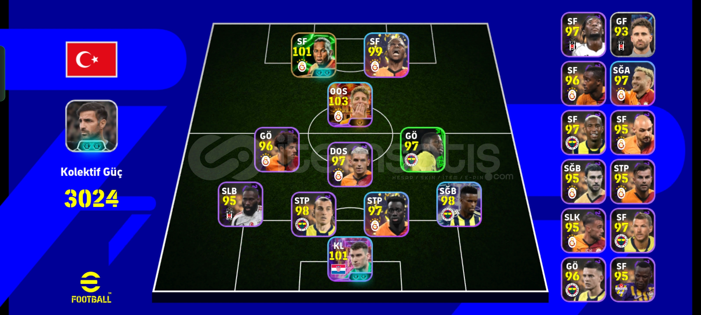 Süperlik kadrosu vardır tek bağ idirim yapılır full epik kadroda vardır İçindekiler 104 forlan 99 mertens(103) süperlik kadrosunda102 Drogba 103 Davut vola103 rikartVe daha fazlası