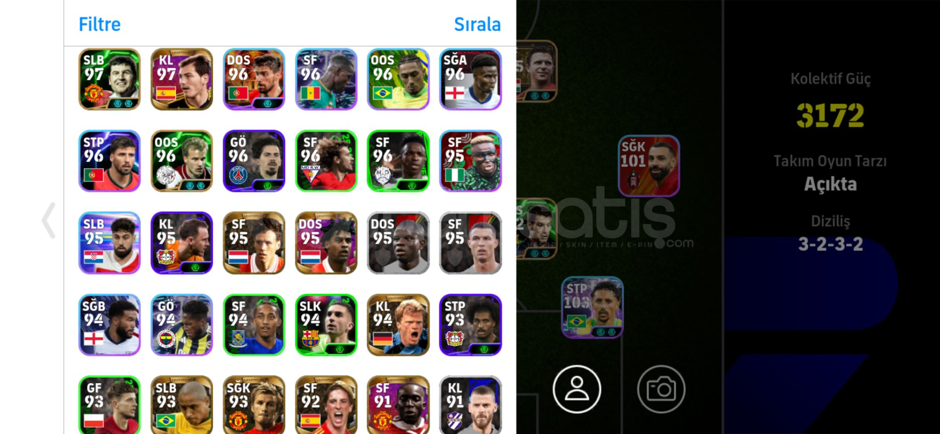 Çok güzel ve değerli oyuncular var bir çok farklı kadro seçenegi ve oyuncu çeşitliği vardır Yılardır bu işin ticaretini yaptıgım için güvenerek ve sorunsuz bi şekilde alabilirsiniz. tek bağ konami E posta üzerine alamayı bilmeyen kardeşlerime satışta yardımcı olurum Aktif olmasam bile alabilirsiniz Geri dönüş Sağlarım.