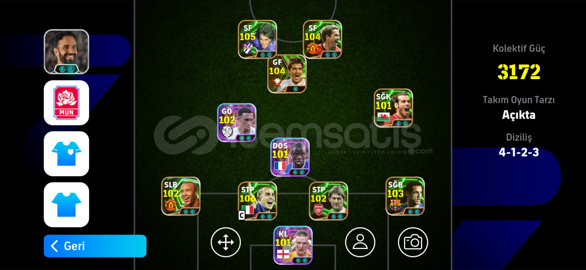 Yeni başlayanlara uygun hesap105 batistuta104 owenBombacı gareth bale-mc yoktur Tek bağ