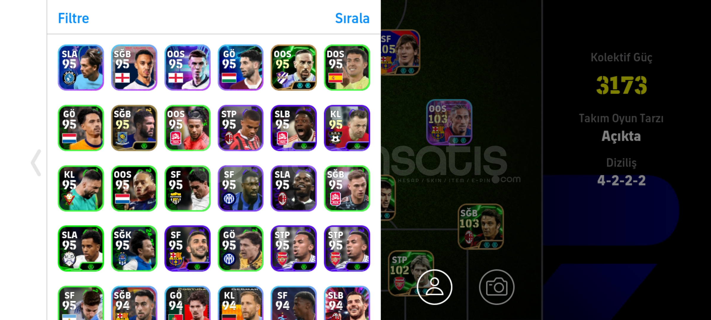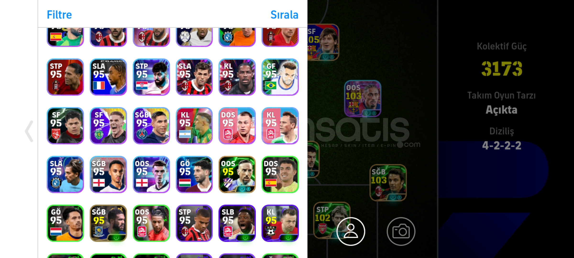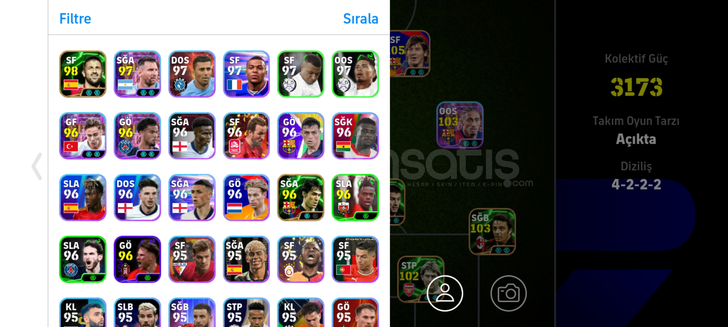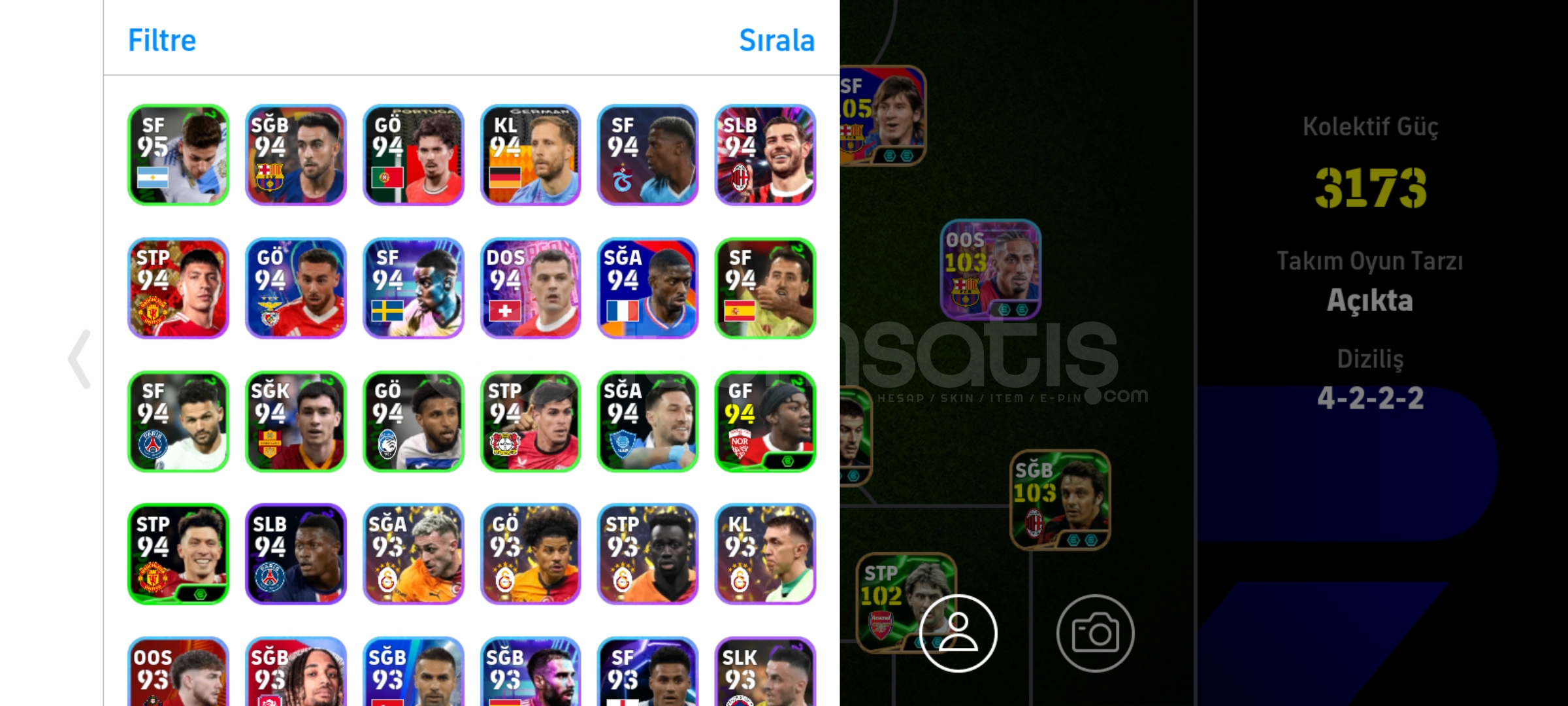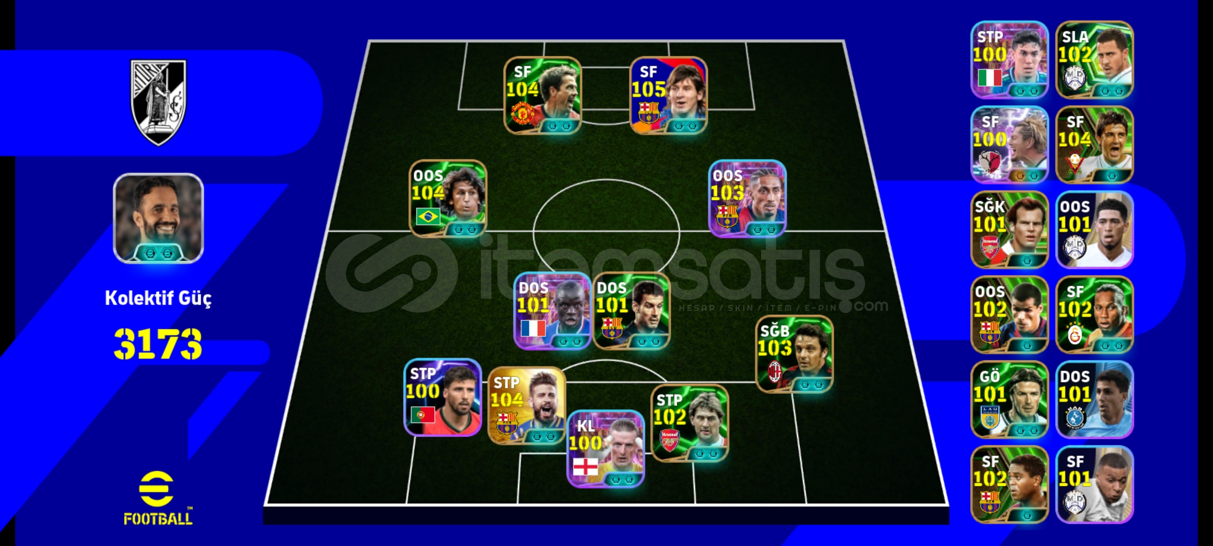 Hesap tek bağ eksi mcsi yok maks kolektifi 3173 Bombacı Zico 105 messi 104 Piqe 104 raphinha 104 Owen 103 Oddo ve rezervi baya kalabalık ve iyi