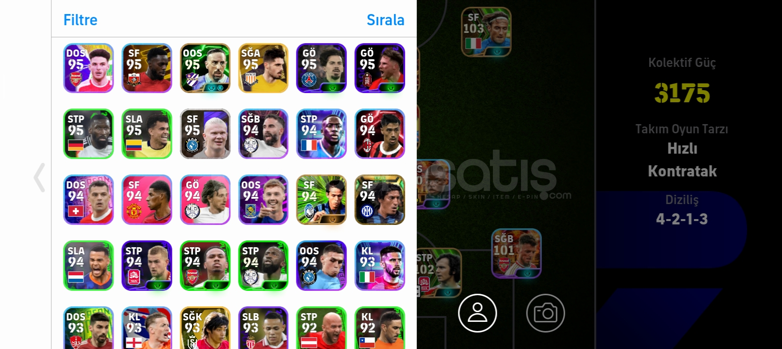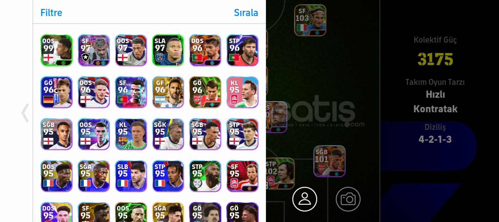 Hesap tek bağ - mc yok İndirim yapılırNadir genç 106 messiDünya kupası 105 griezmannEfsane 103 totti ve 103 baggio 104 bellingham 103 beckenbauer