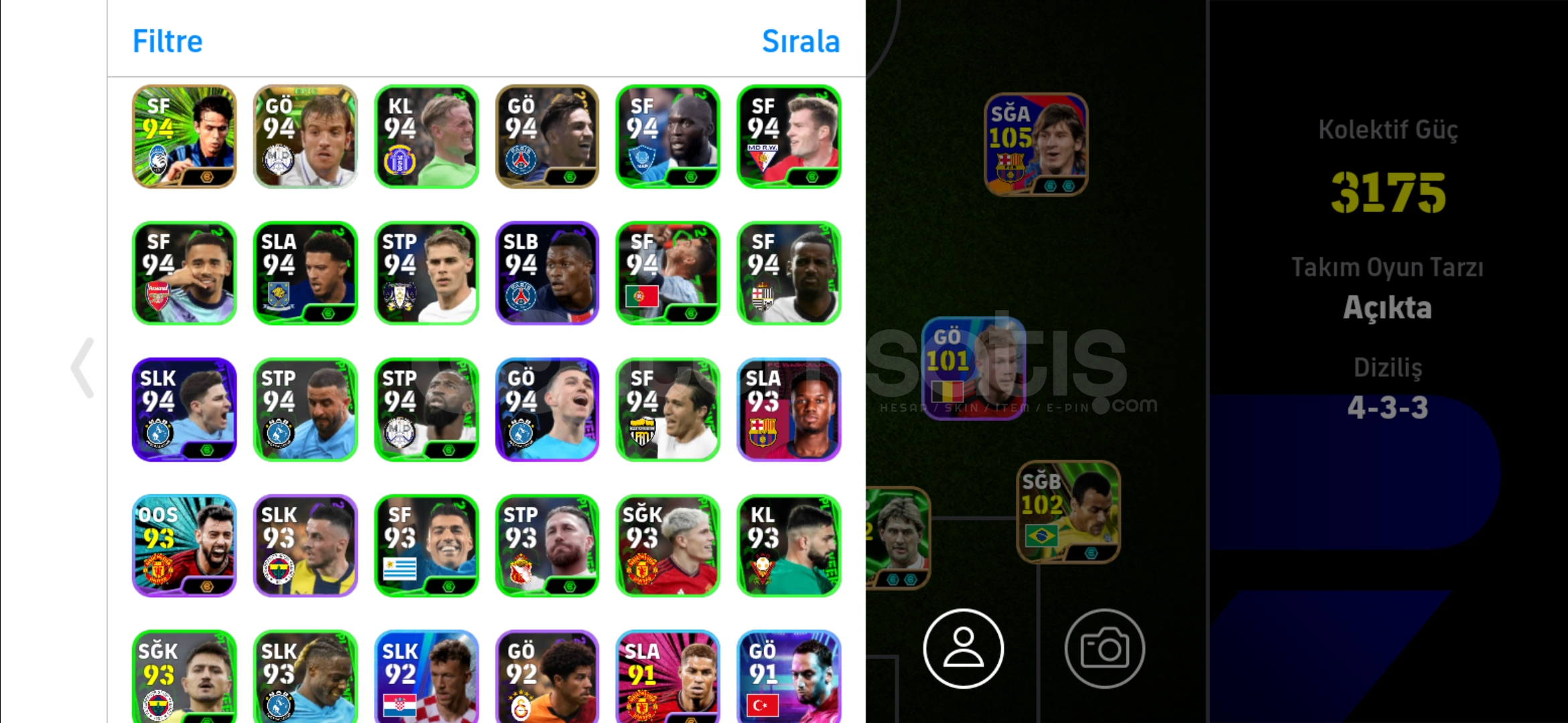 Hesapta cruffyler yeni gelen 103 osimhen bombaci bale 105 messi ve daha bircok epic ve xabi alonso ruben amorim td bulunmaktadir alana hayirli olsun.