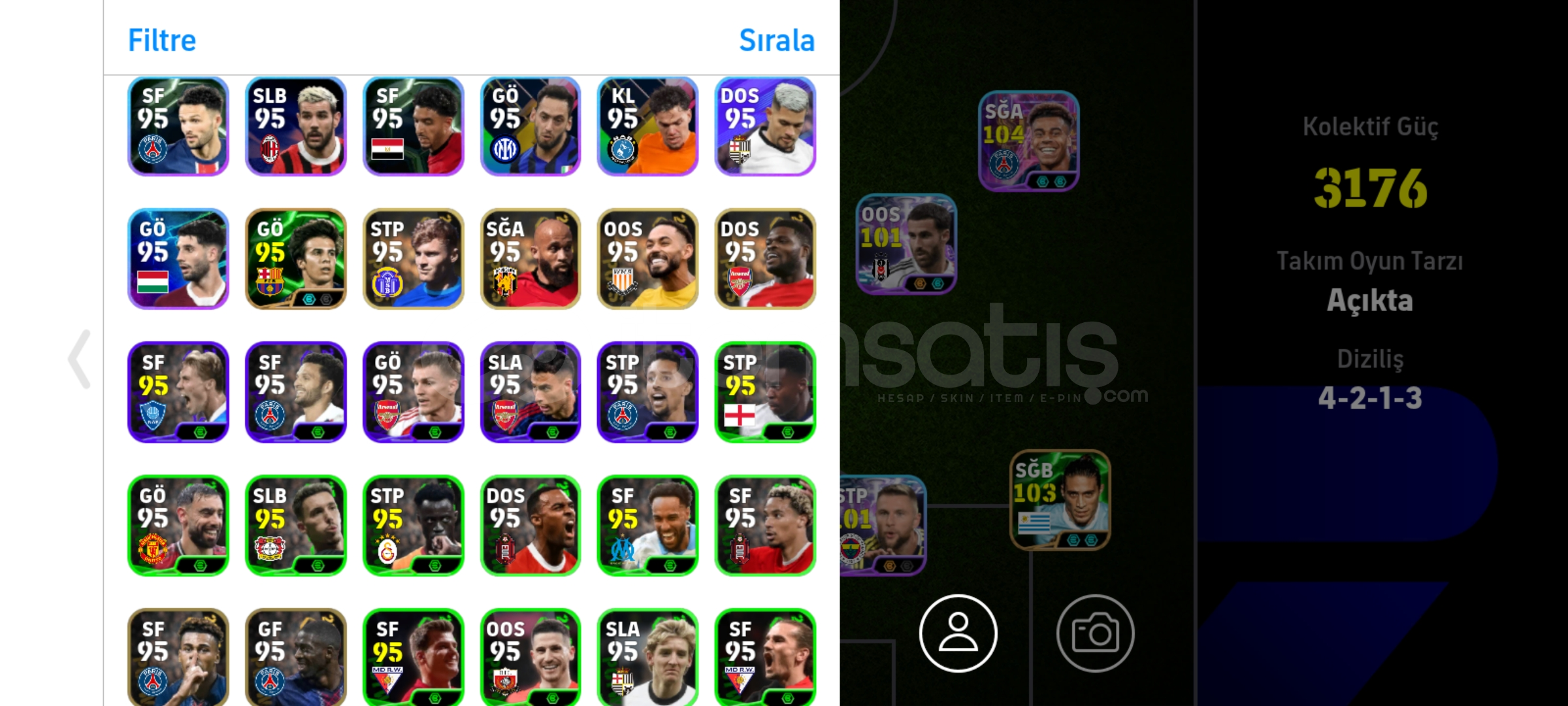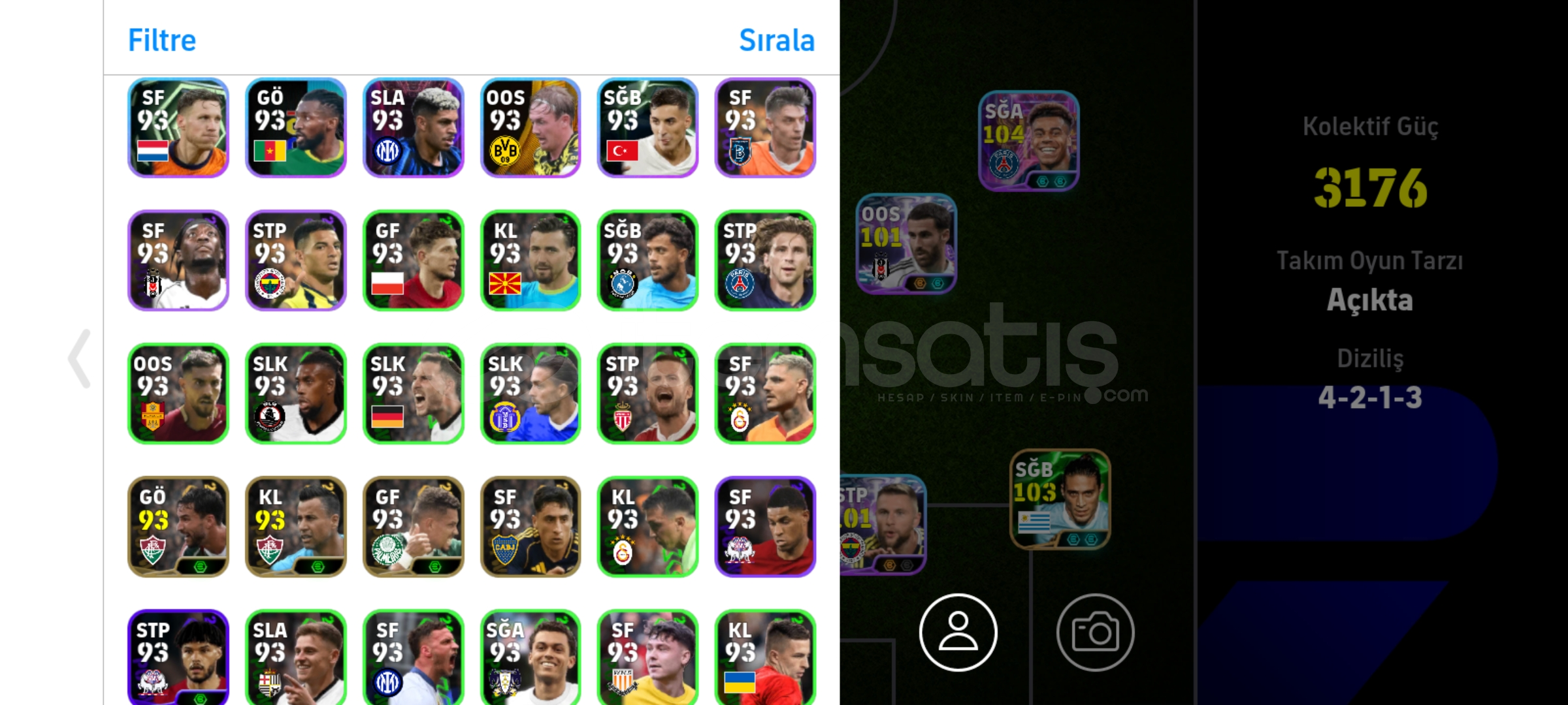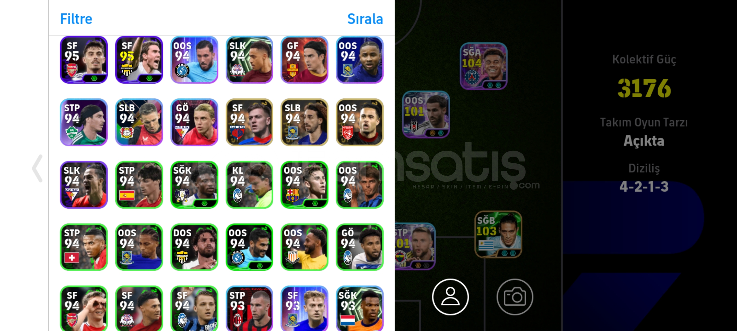 105 Rodri105 Oliver Kahn104 Desire Doue104 Michael Owen102 Eden Hazard104 Baresi101 Lampard102 Gerrard102 Ronaldinho102 Orkun KökçüVe daha fazlası mevcut89 Beckenbauer89 Ruben AmorimKonami ID ye tek bağ hesabKadro dışı bir sürü renkli kart mevcutHerşey resimlerde var