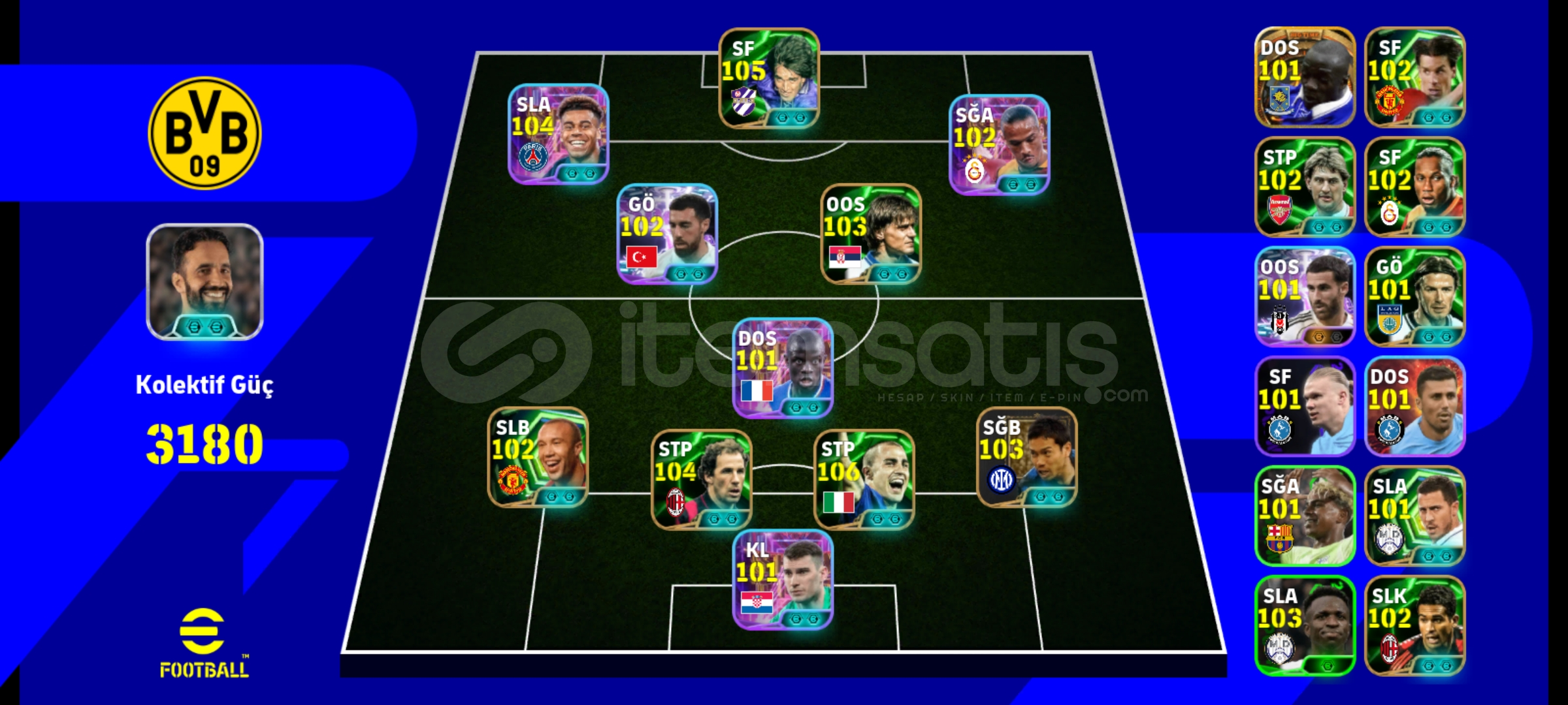 Çok güzel stoper hattı var103 Bombacı Sane104 Due105 Batistuta2 teknik direktör Jhon cruyf ve Ruben amorim106 Carnavaro103 StockjkovTek bağdır pazarlık yapılır