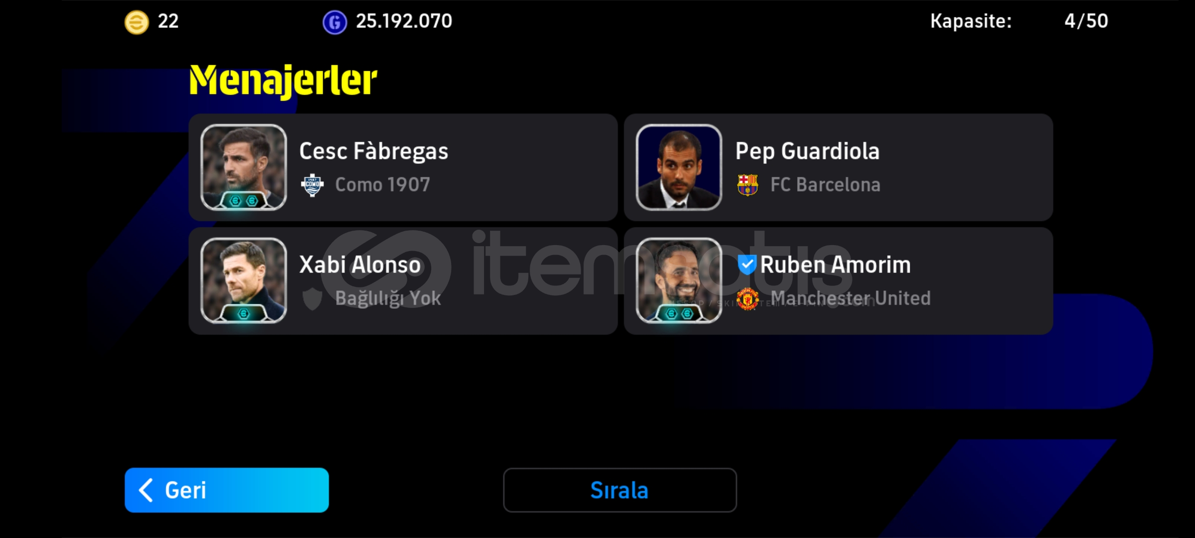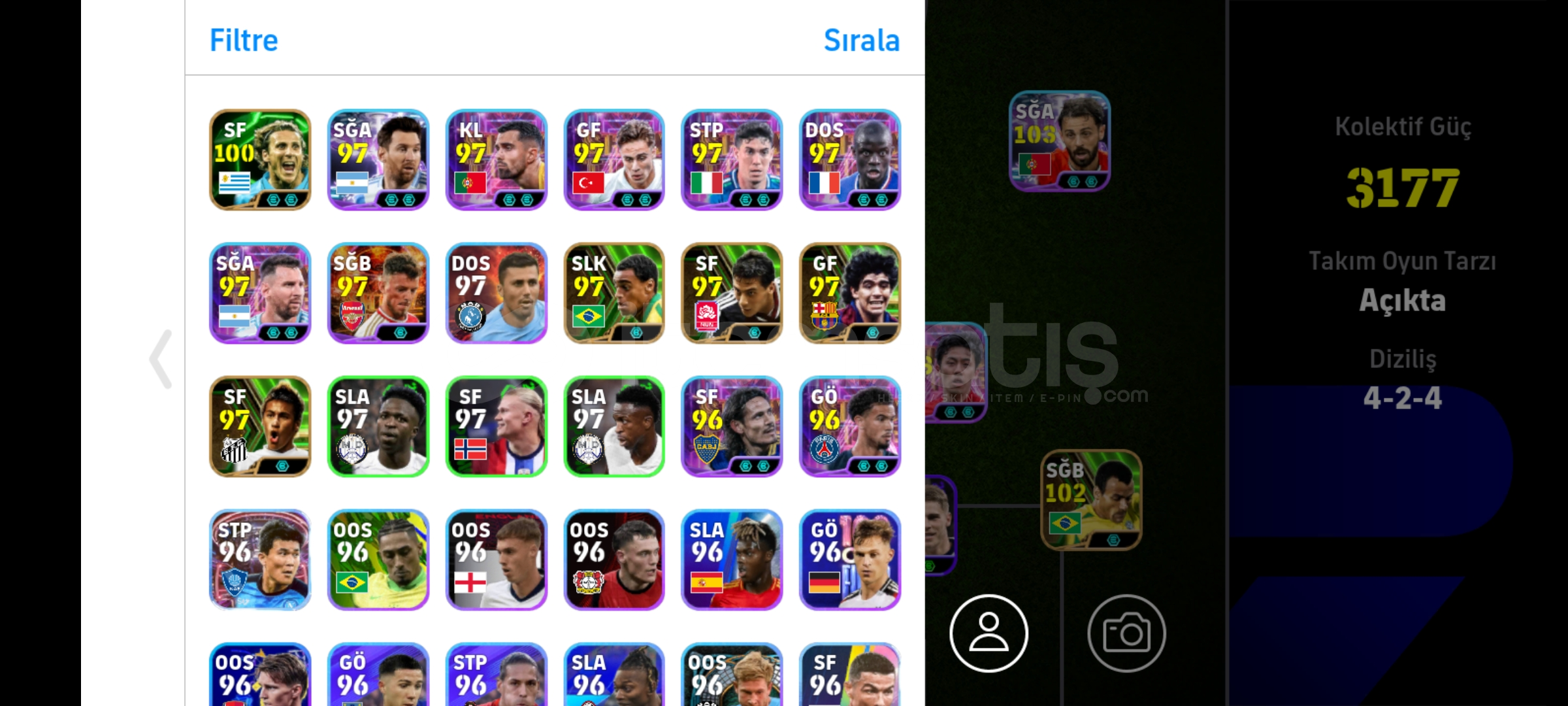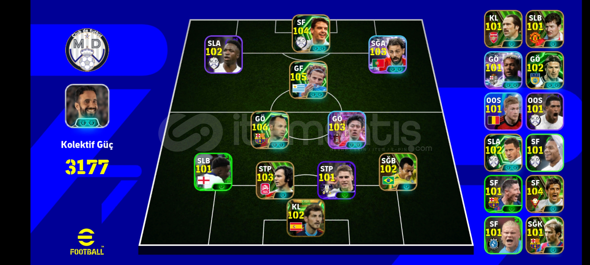 İos/Android tek bağ -mc yokEfsane kafacı morientesMükemmel bitirici forlan (2 tane)Süper Lig kadrosuda mevcutKadro dışında efsane bir sürü potw kart mevcut çok dolu hesap ve çok ucuz