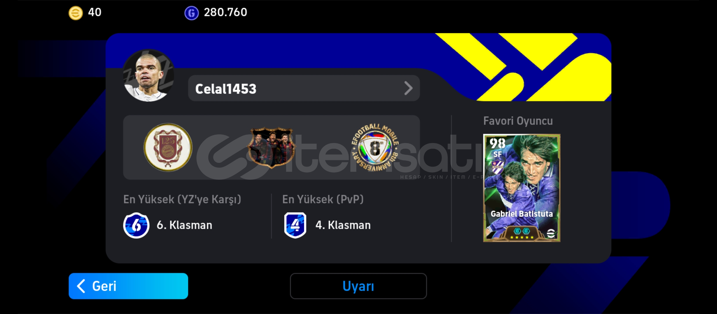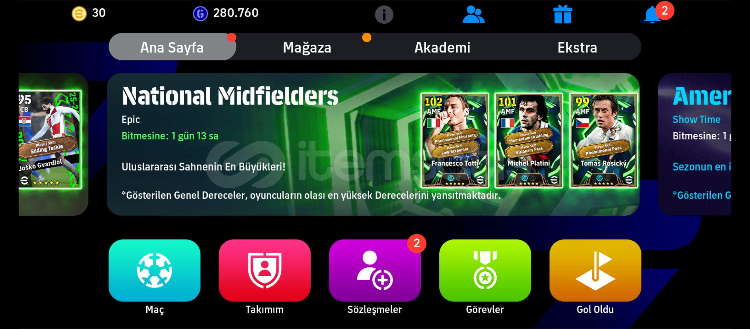 Hesabımızda bombacı burak yılmaz ve 106 Oliver kahn gibi birçok epic bulunmaktadır.