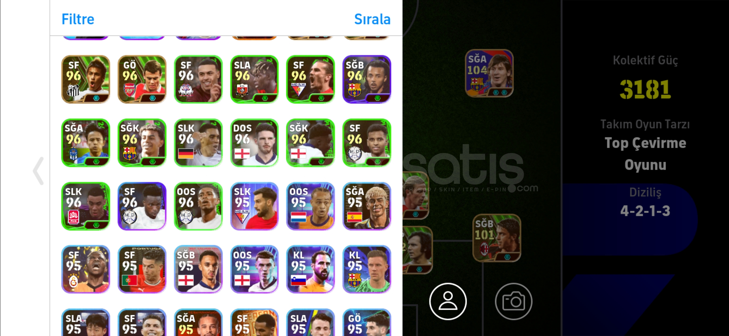 Hesap tertemiz Tekbağ Güvenilir alışveriş 7/24 HizmetRAFA SİLVA DavinsonSanchez MESSİ Trendyol süperlig kadrosu