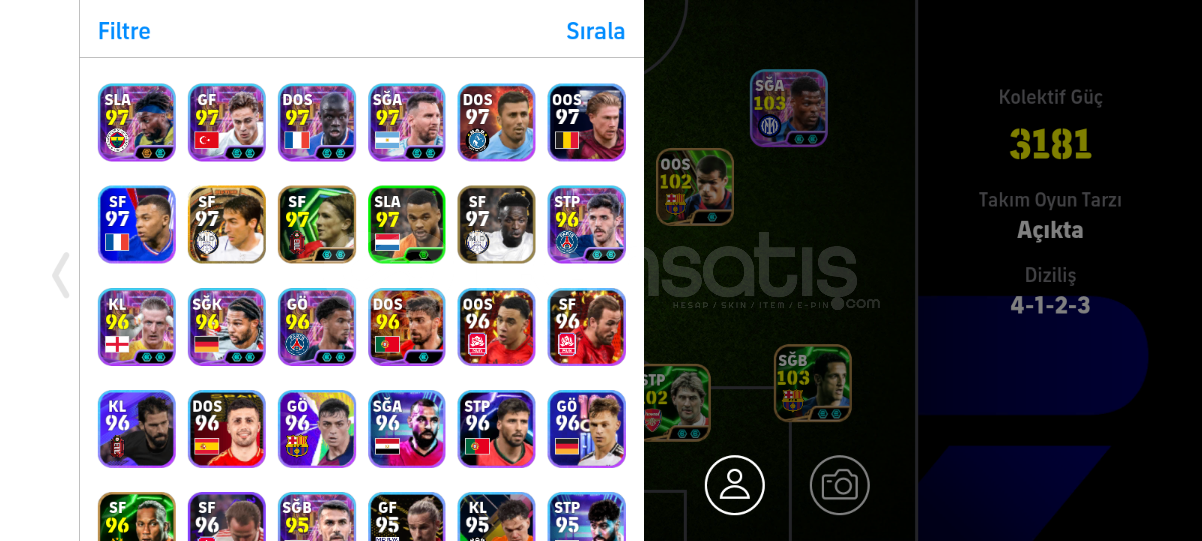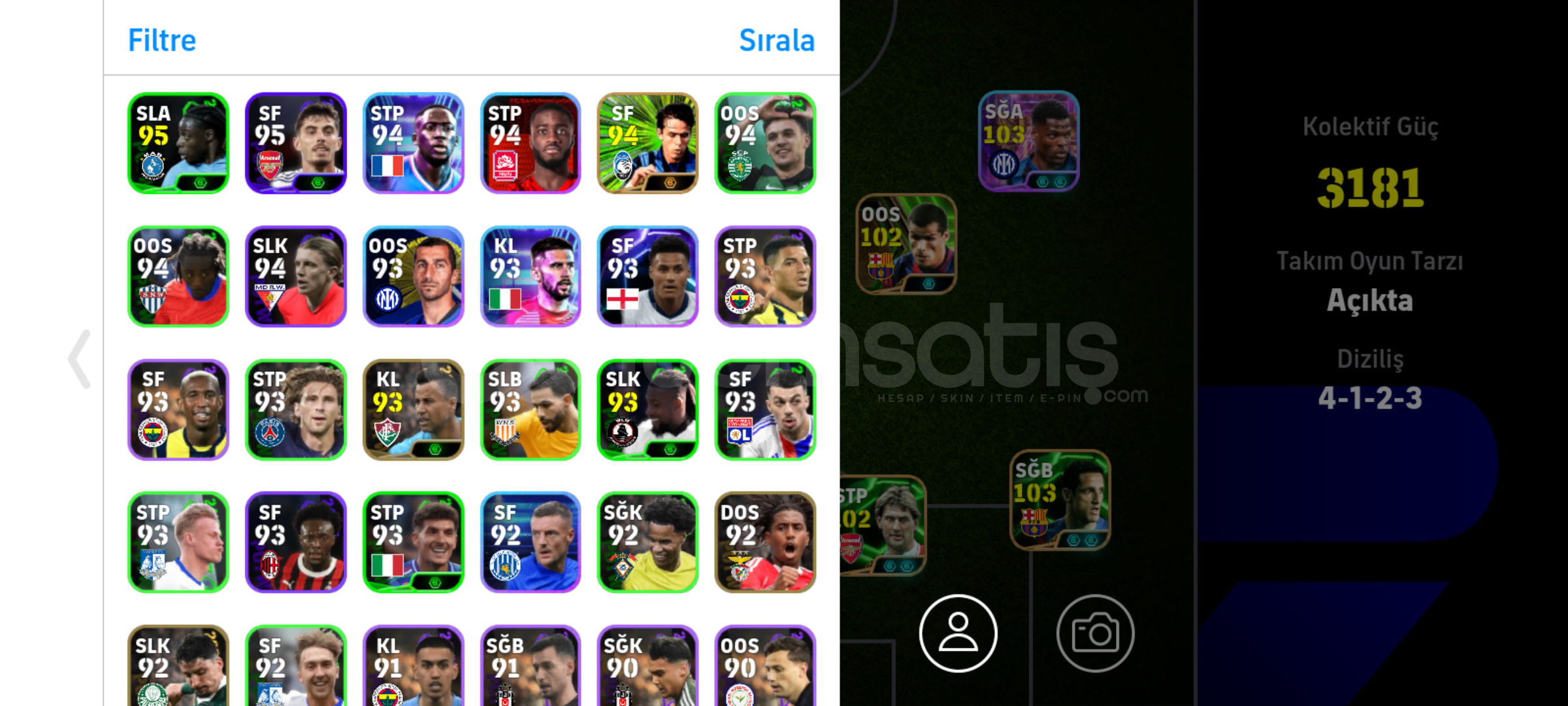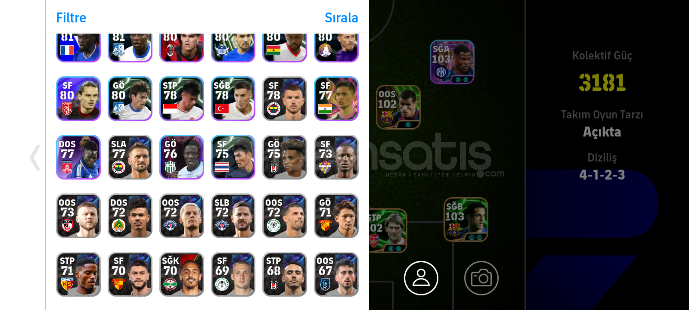 hesapta bol bol oyuncu vardır bizzat kendi oynadığım emek verdiğim ve sevdiğim hesabımdır gelişime açıktır ihtiyacım olduğundan satıyorum gerekli olan tüm bilgileri ilan görsellerinde mevcuttur alana şimdiden hayırlı olsun.