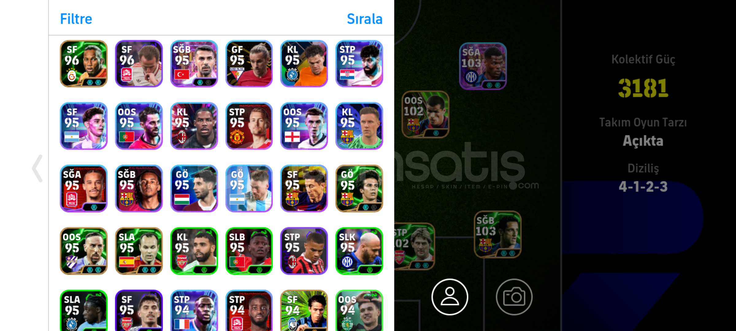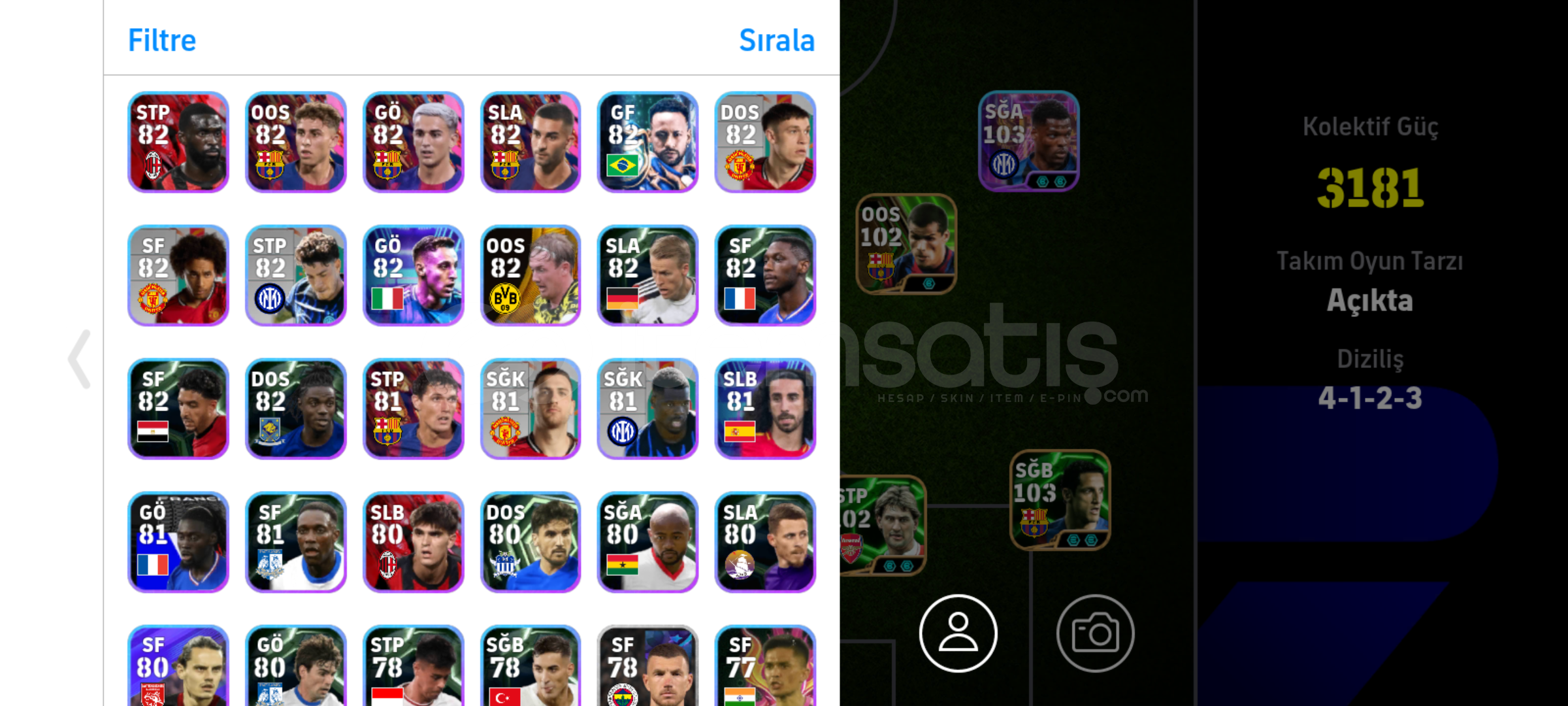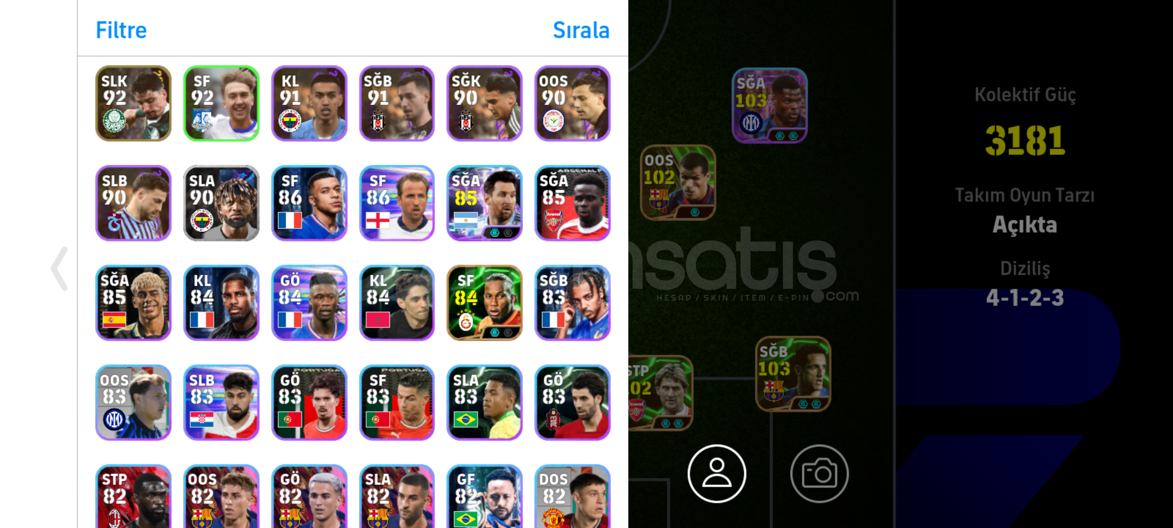hesapta bol bol oyuncu vardır bizzat kendi oynadığım emek verdiğim ve sevdiğim hesabımdır gelişime açıktır ihtiyacım olduğundan satıyorum gerekli olan tüm bilgileri ilan görsellerinde mevcuttur alana şimdiden hayırlı olsun.