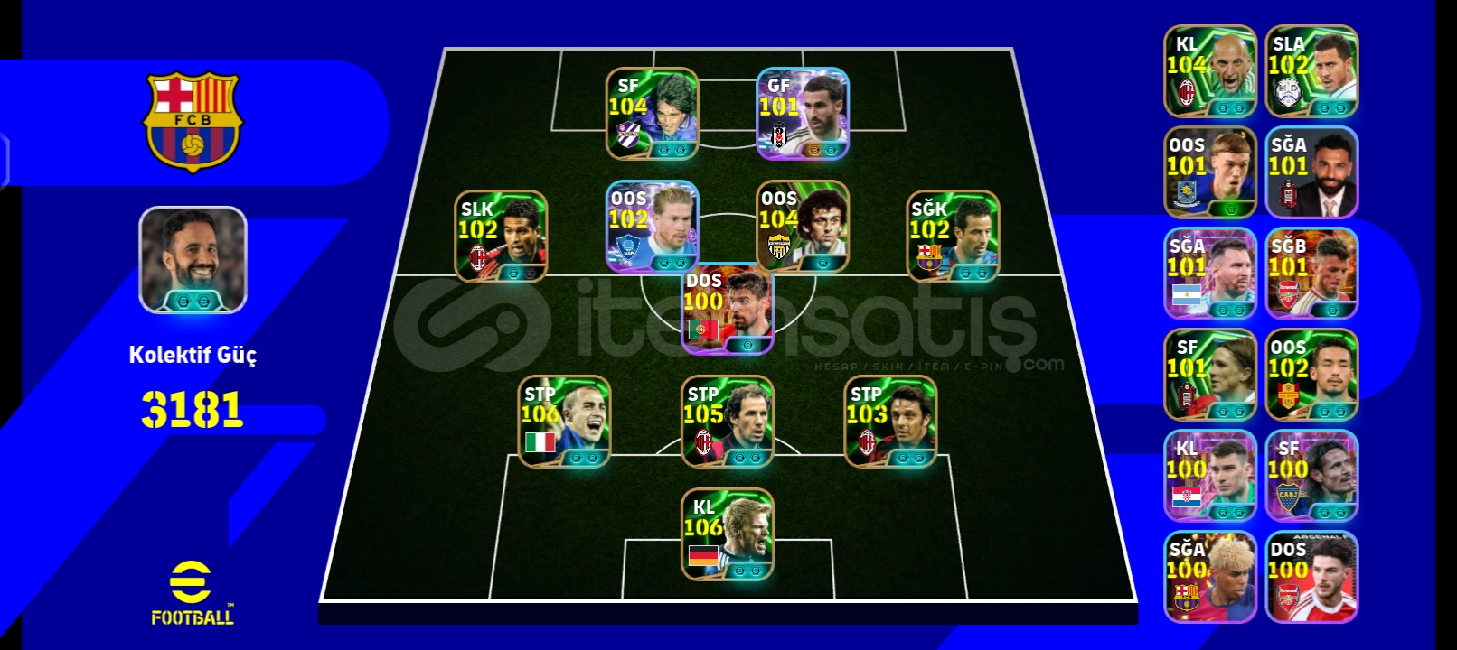 Hesap tek bağdır-mc yokturÇok sağlam defans hattı ve kaleciucuz hesap kasılmalıkPazarlık payı vardır105 platini105 batistuta106 oliver kahn106 cannavaro105 baresi104 oddo101 rafa silva102 eden hazard103 de bruyne102 fernando torres104 efsane kaleci abiati101 ben white100 show time cavani