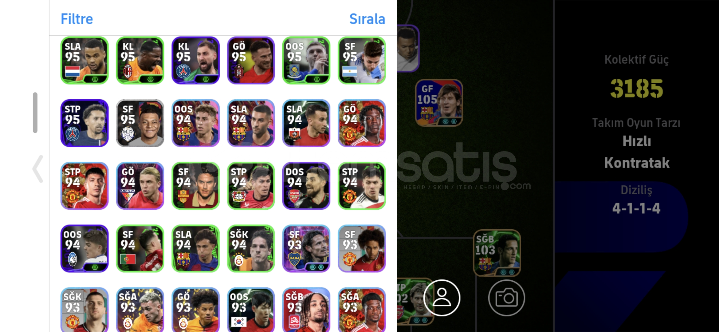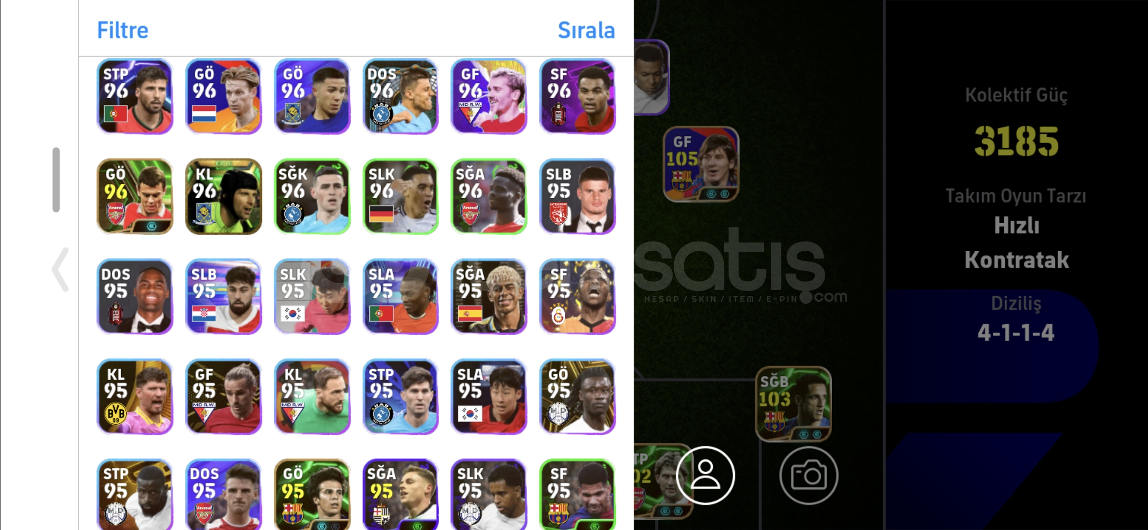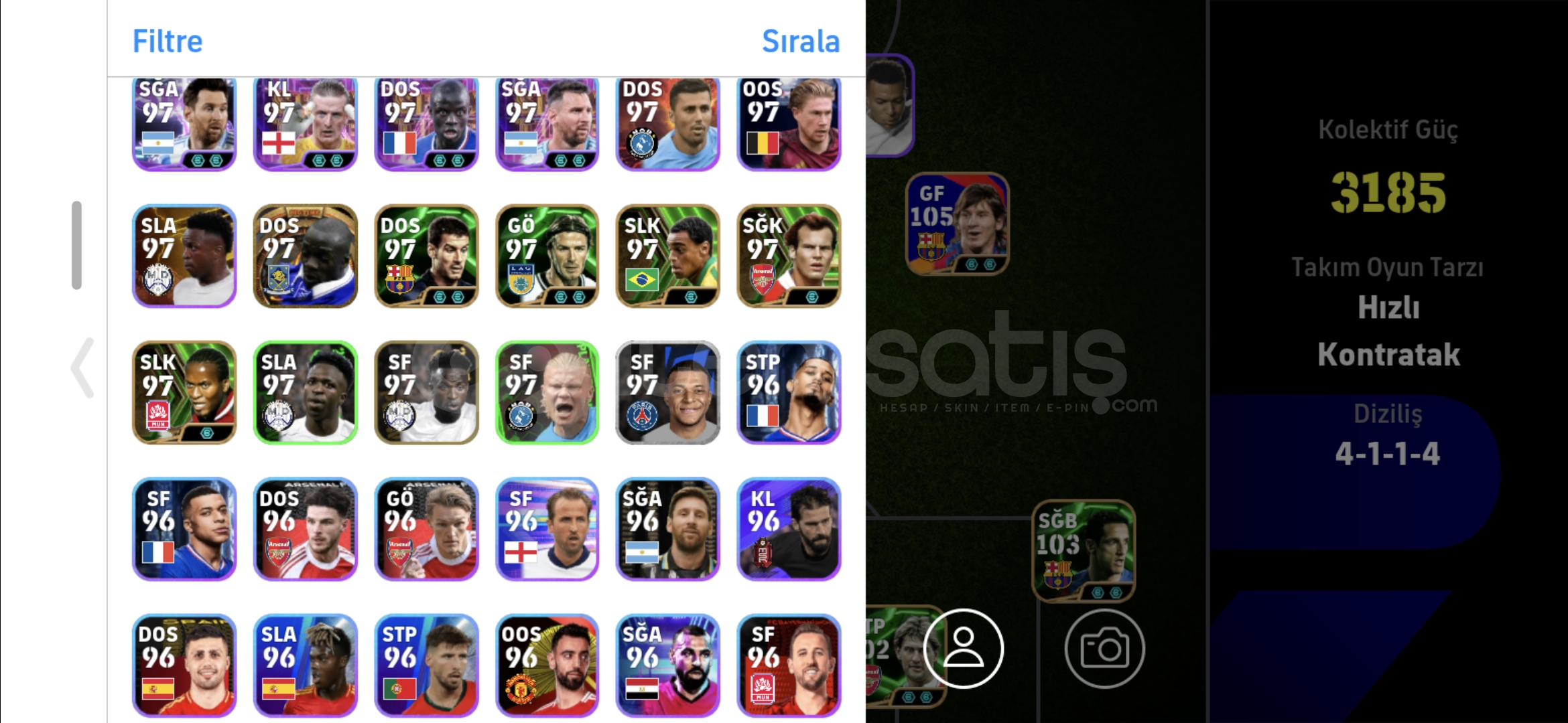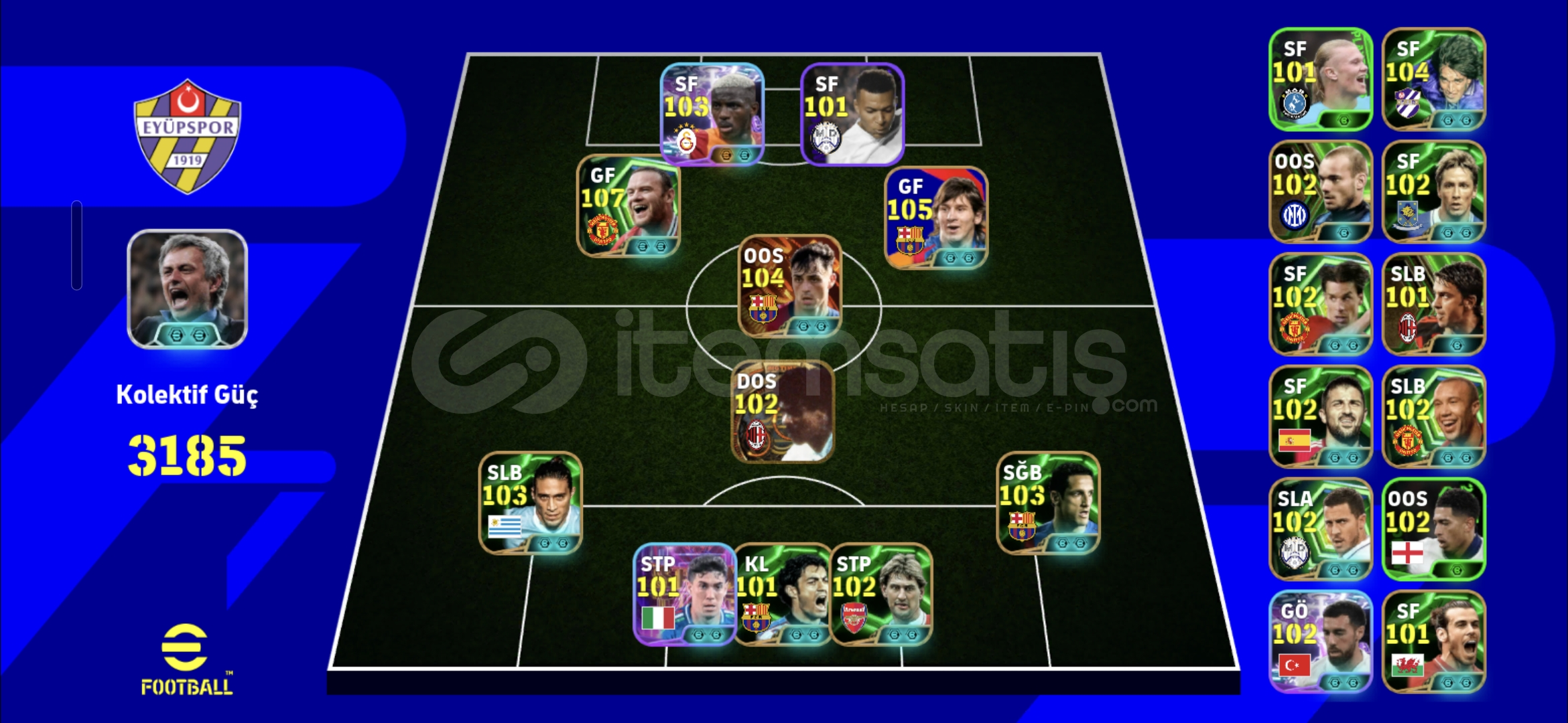 Hesapta fotoğraftaki oyuncular vardır ayrıca hesap 2. Klasmandadır sıralaması 1milyonun içinde.Tek bağdır konami id üzerinden direk devredilecektir. Fiyatta pazarlık mevcuttur. Abartmadığınız sürece pazarlık yapabiliriz.Hesaptaki önemli oyuncular;107 wayne rooney 104 pedri103 osimhen 104 batistuta105 messi102 reiqard103 beletti101 makalele102 tony adams101 bale (Bombacı)103 cacares101 bastoni 101 cos...