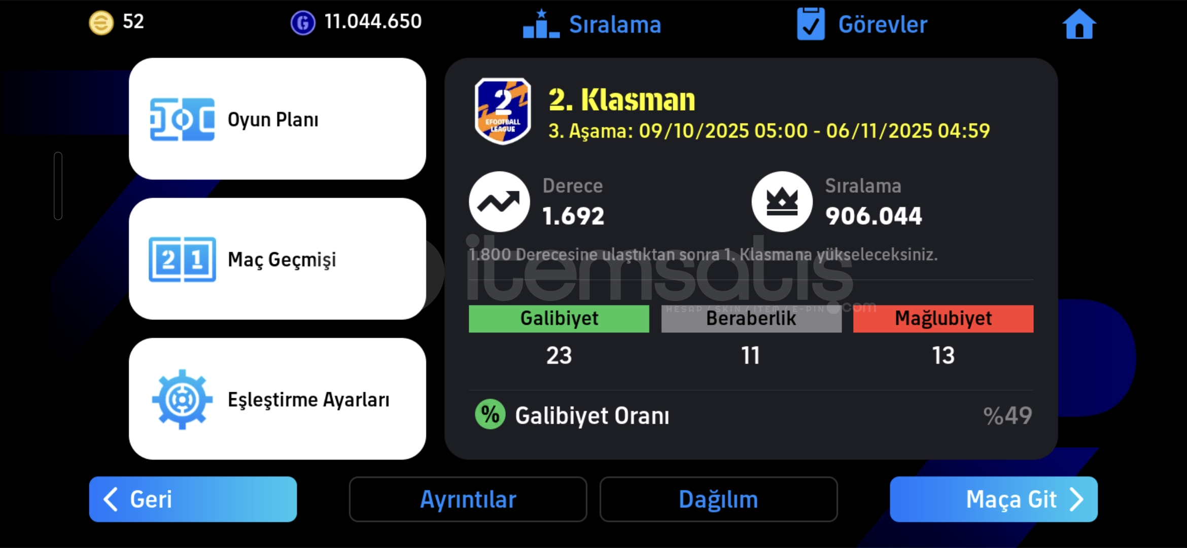 Hesapta fotoğraftaki oyuncular vardır ayrıca hesap 2. Klasmandadır sıralaması 1milyonun içinde.