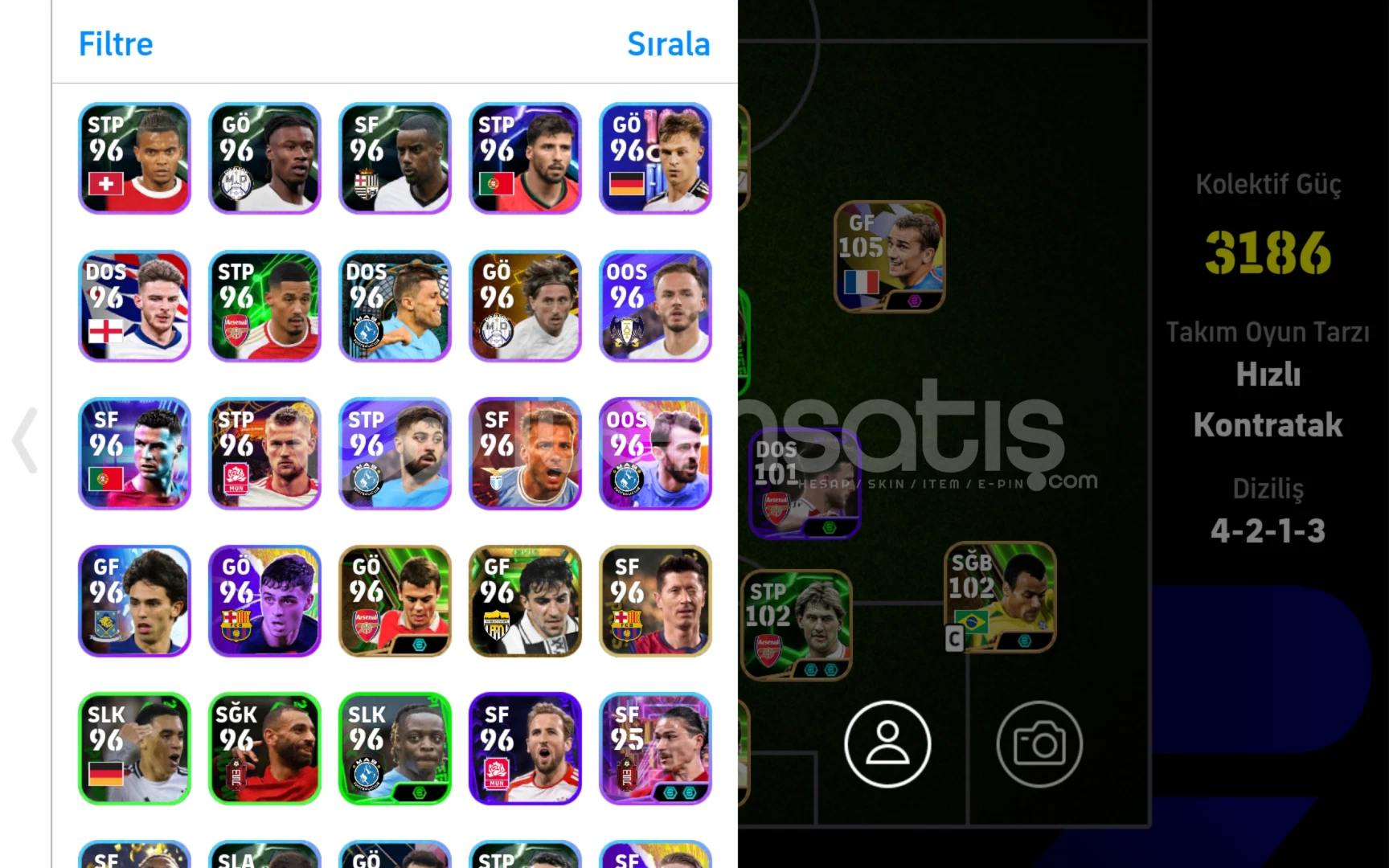 Tek bağ mail şifre değişir sorunsuz teslim edilir.Süper lig ful kadro21 bazı epiclerBol rezervliBu fiyata yokParalı 3 menajer3 kez 1.klasman gordu