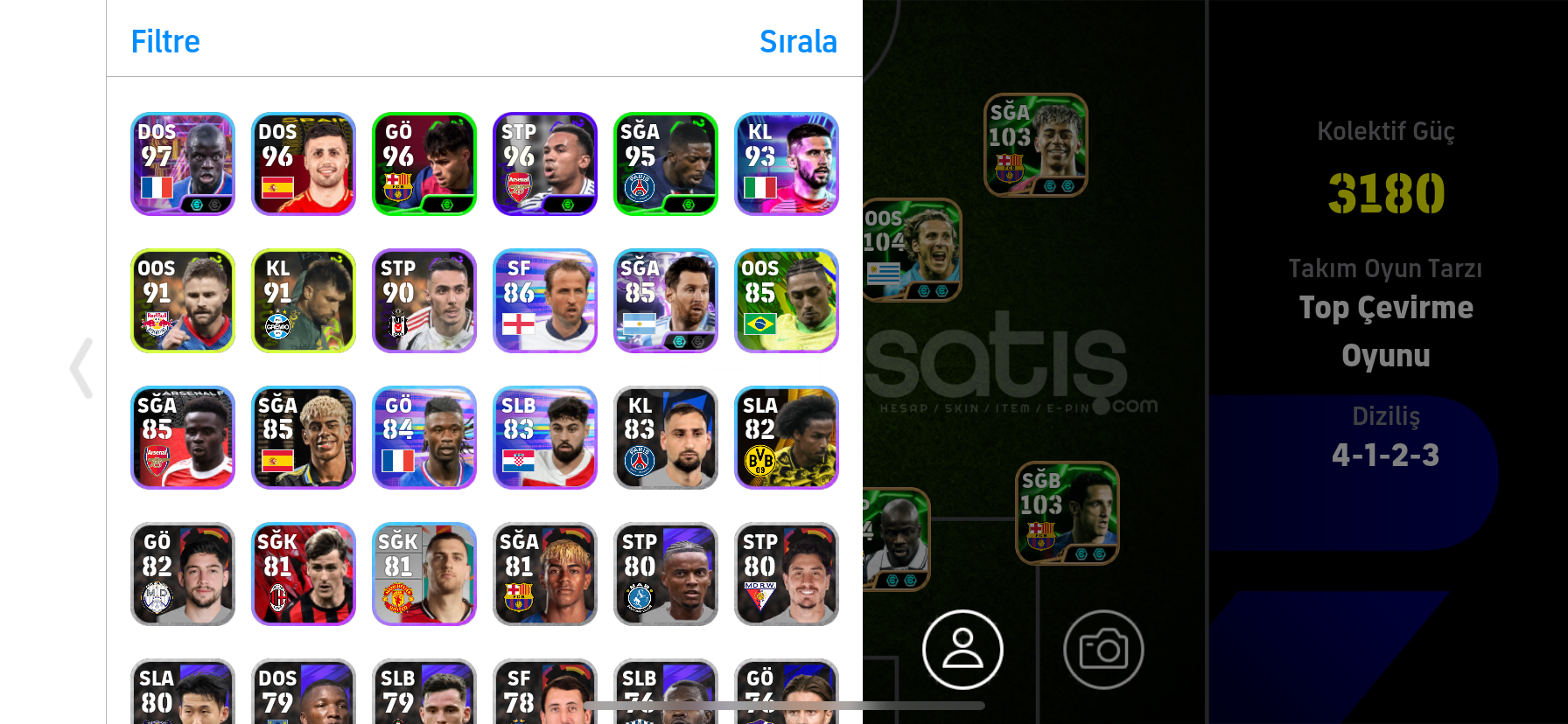 3180KG İOS ANDROİD TEK BAĞ EKSİ MC YOKTUR OYUNCULAR TAM BASILIRSA KG 3185 OLUR REZERV İDARE EDER ROMARİO YAMAL SANE LAHM THURAM KENAN FORLAND VE DAHASI FIRSAT HESAPTIRHIZLI TESLİMAT GÜVENİLİR ALIŞVERİŞ :)