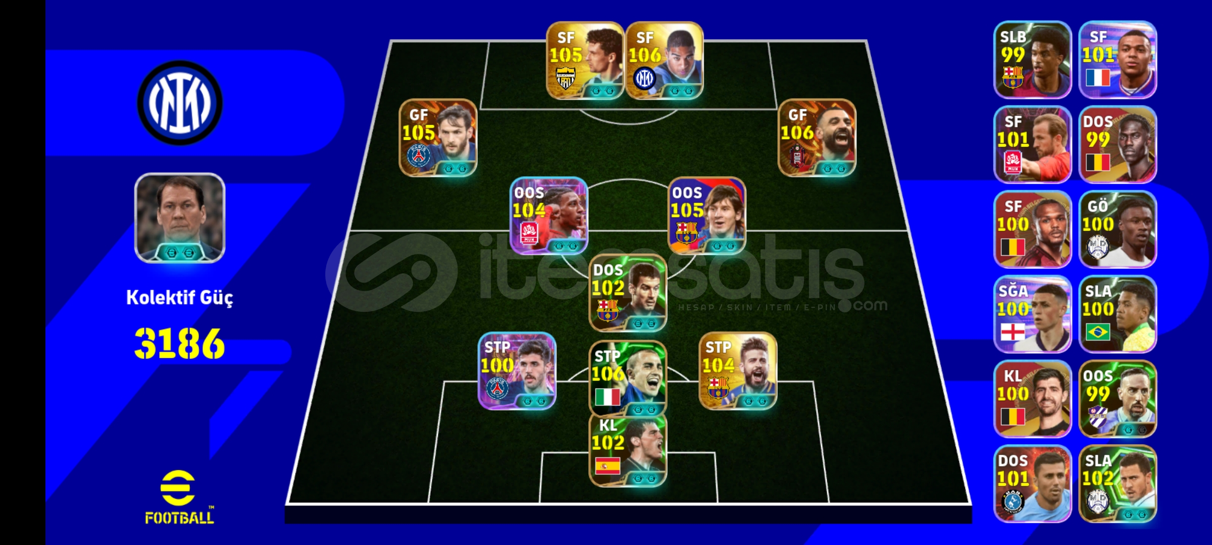 3186 KG105 BOMBACI KVARA106 SALAH106 ADRİANO105 BAGGİO104 PİQUE104 OLİSE İOS - ANDROİD TEK BAĞ