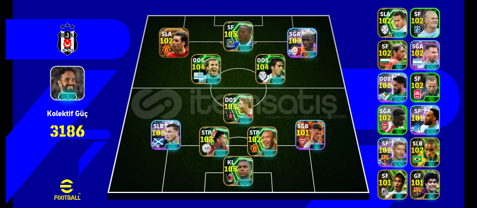 ⭐105 Drogba⭐105 Gerrard⭐105 Dida⭐104 Forlan⭐104 Raul⭐103 Osimhen⭐103 Rijkard⭐103 Robertson⭐103 Stickhow⭐102 İsco⭐102 Roberto Carlos⭐102 Lewandowski⭐Tek bağ⭐Klasman 2⭐Klasman 1'e çıkmıştır.⭐Rahat 3190kg görür.⭐Acil satılıktır ❗❗❗