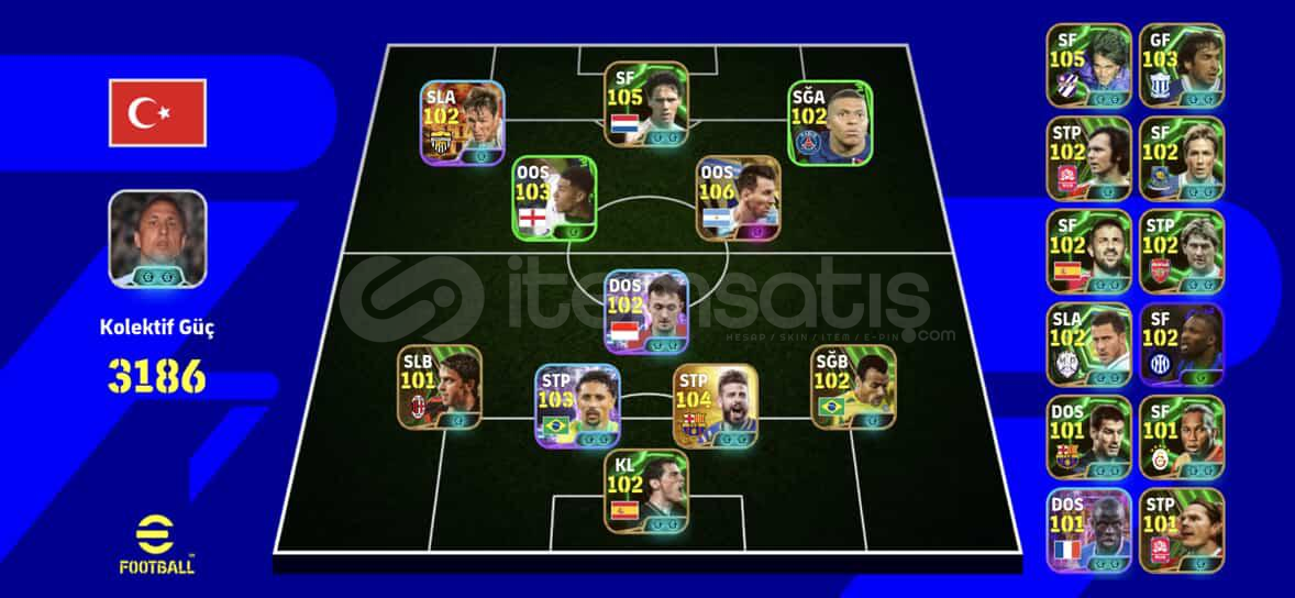 -Johan Cruyff,Lionel Scaloni,Xabi Alonso,SouthGate-460myclub-105Marco Van Basten-102Chiesa BOMBACIII-106MESSİ-102İvan Jenner-103Marquinhos-104Pique-102Cafu-102Casillas-105Batistuta-103Raul-102Torres-102Villa-102Tony Adams-102Hazard-101Guardiola-101DrogbaHesap mükemmel hesaptır rezervi falan harikadır tekliflerinizi bekliyorum.
