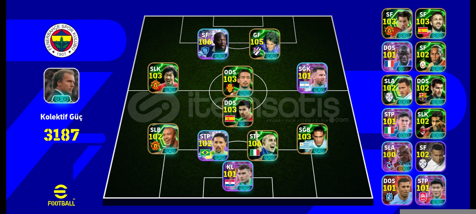 TEK BAĞMAİL DEĞİŞİR MÜKEMMEL HESAP106 LUKAKU105 BATİSTUTA103 XABİ ALANSO103 PARK Jİ SUNG103 NAKATA103 CACARES 102 MARQUNYOS VE DAHA FAZLA MÜKEMMEL OYUNCU