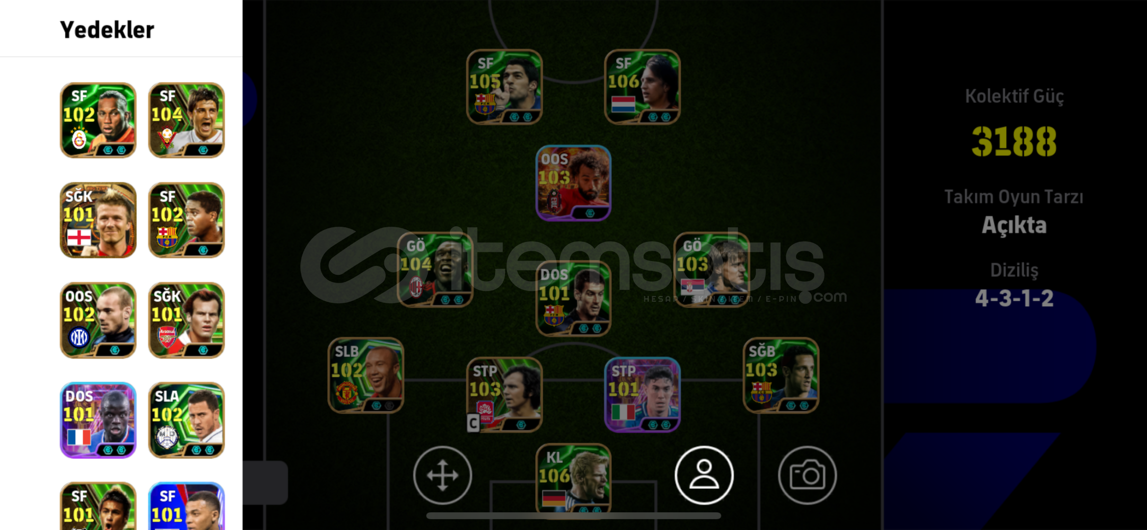 Hesapta 105 suarez 106 cruyff 106 kahn 104 seedorf gibi oyuncular bulunur hesapta 2 menajer vardır amorim ve xabi alonsobulunur ve tekbağdır hesap