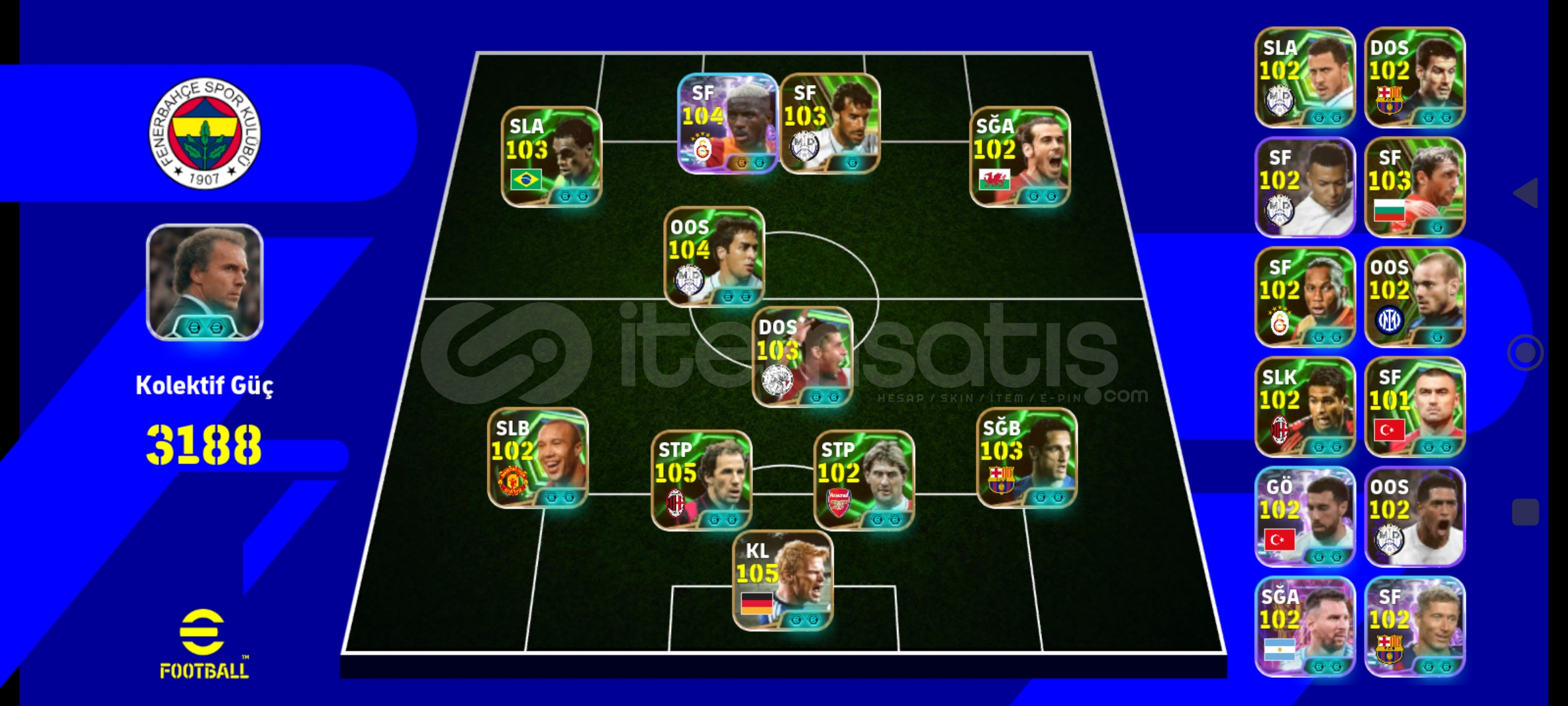 3188KG tek bağ Konami id -mc yoktur 104 osimhen 102 bombacı bale 103 danilson 103 nisterolj 104 Raul 105 defans 105 Oliver kahn 103 dos ve dahası resimdeki gibi