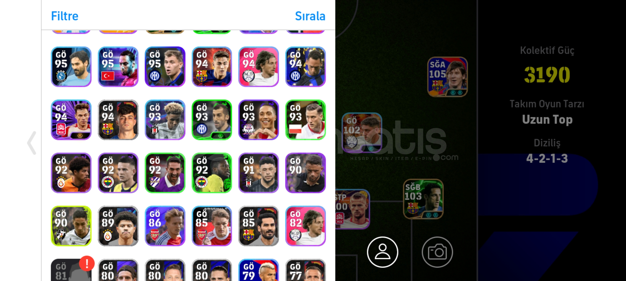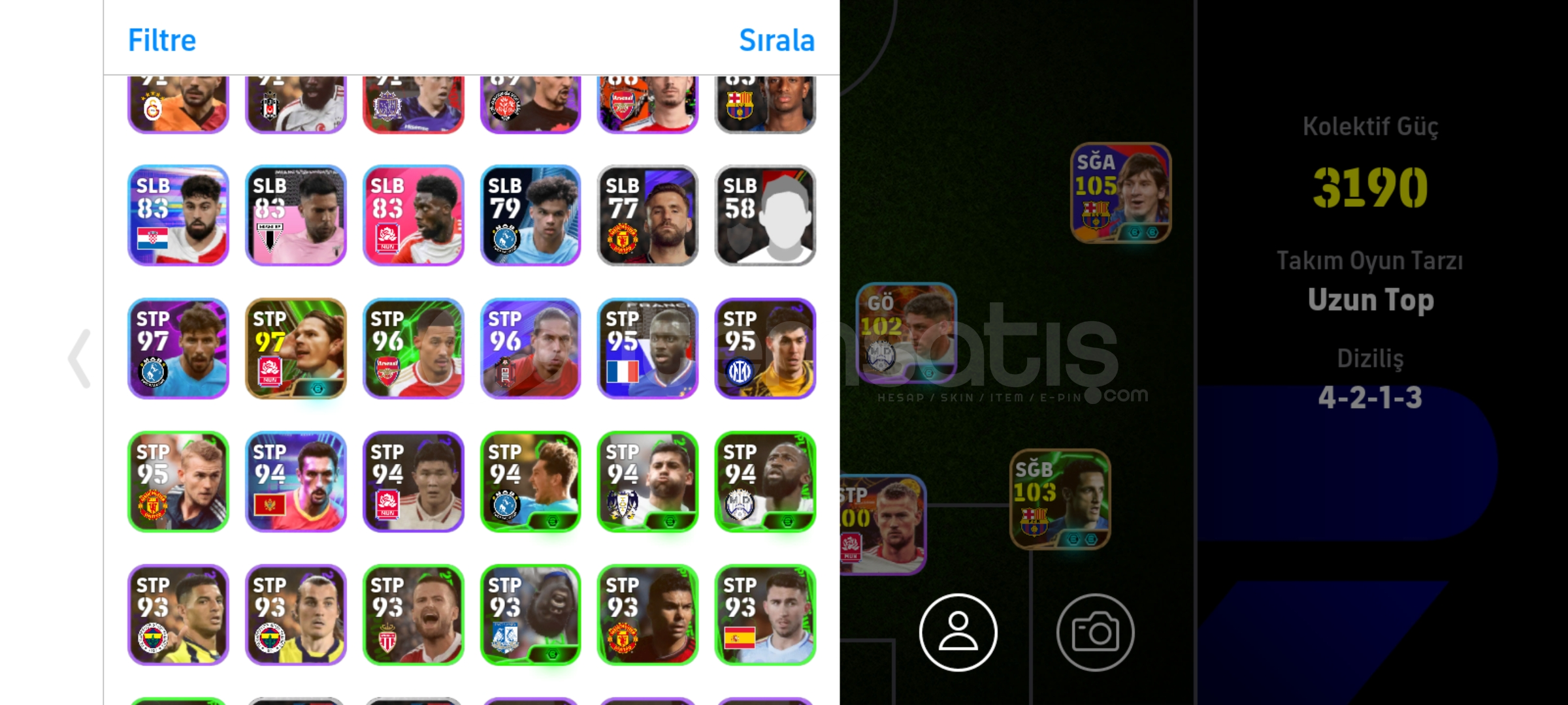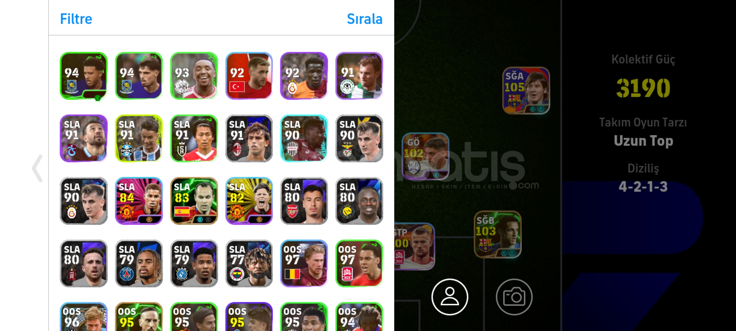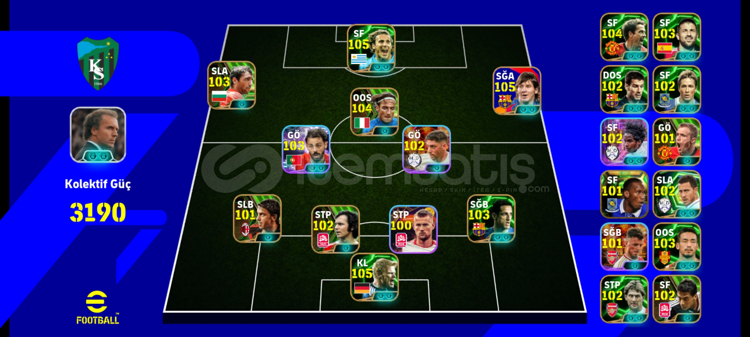Arkadaşlar bol rezerv vardır epikleri zaten görüyorsunuz anlatmaya gerek yok 104 totti 105 forlan 105 Oliver kahn hesapta toplam 400 oyuncu var bol rezervli TEK BAĞ ALANA HAYIRLI OLSUN HESAPTA -MC YOM 15M GP VARDIR 105 MESSİLİ EFSANE BOMBA HESAP