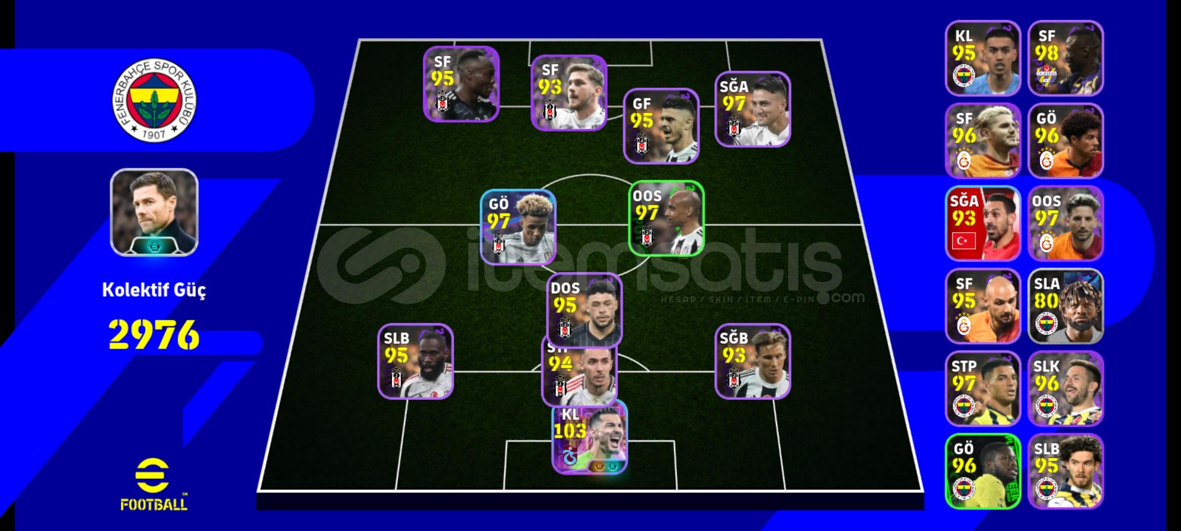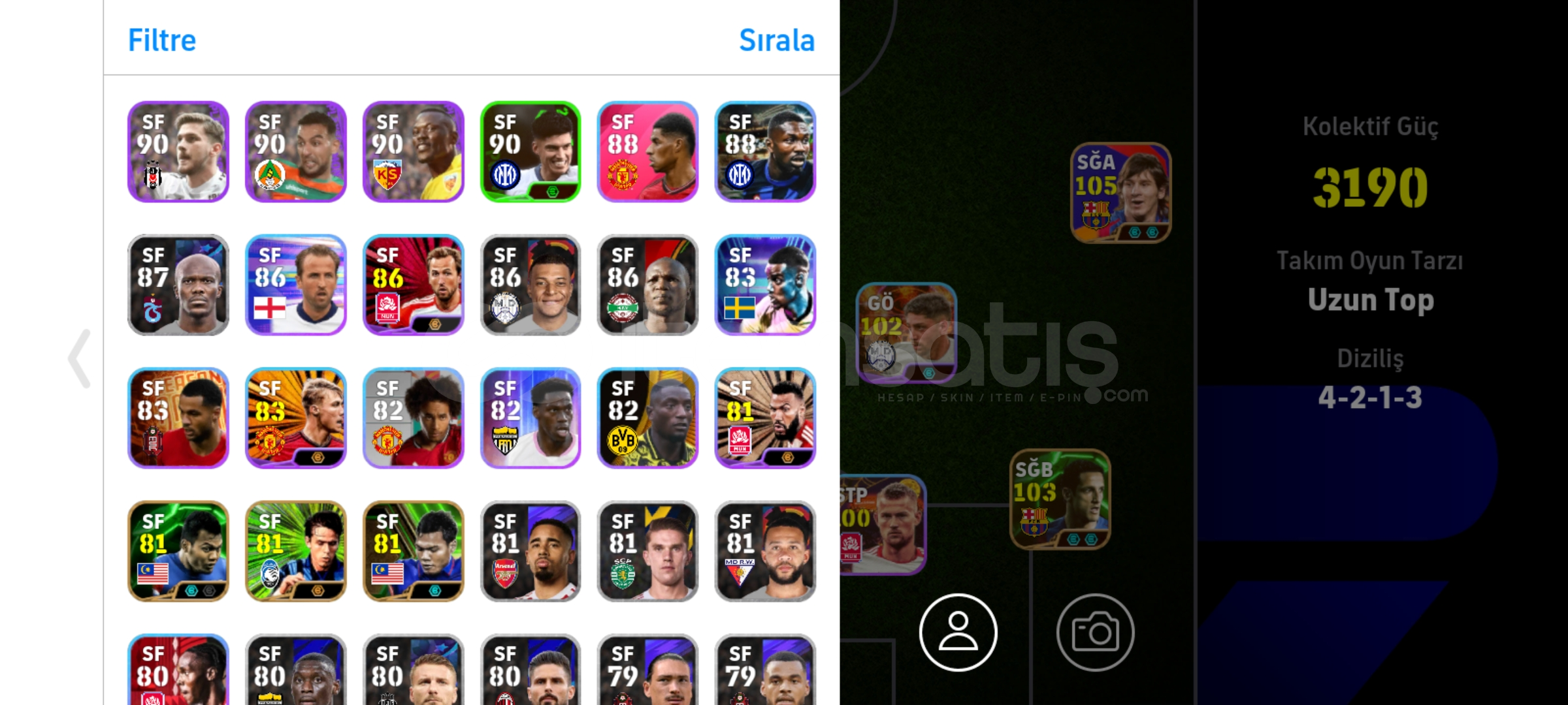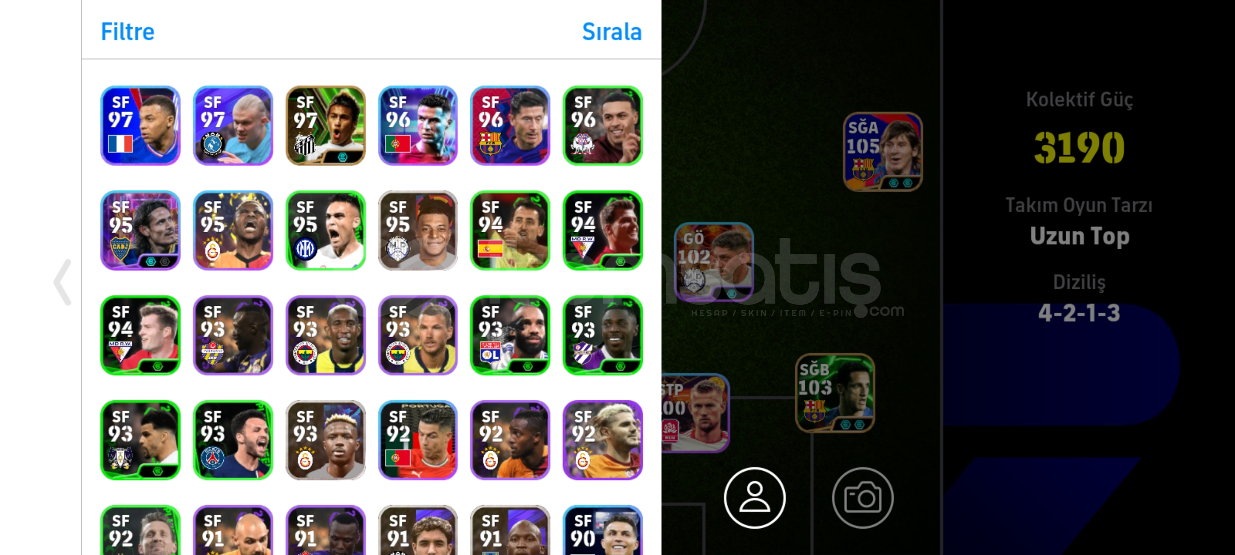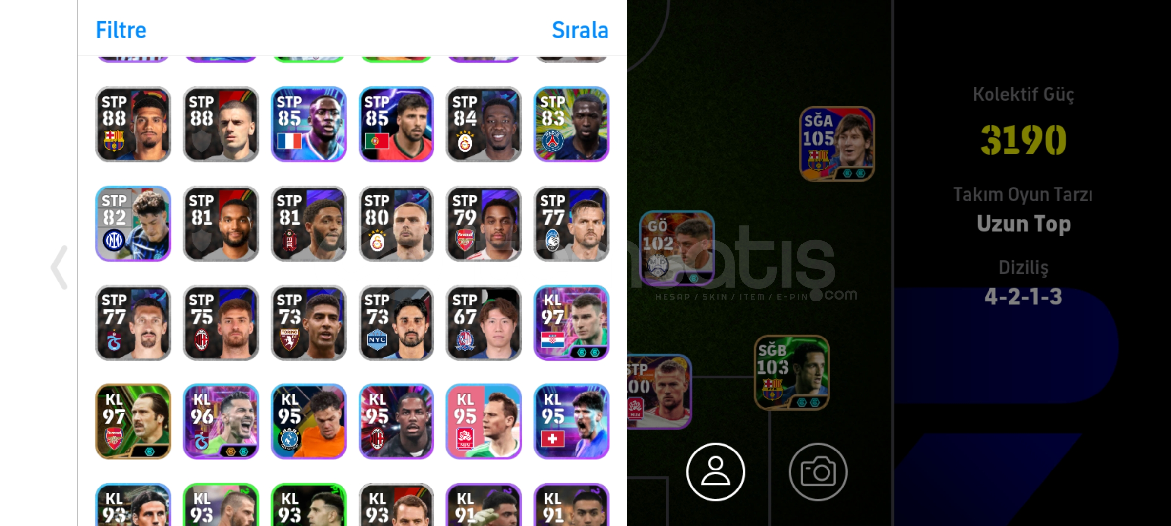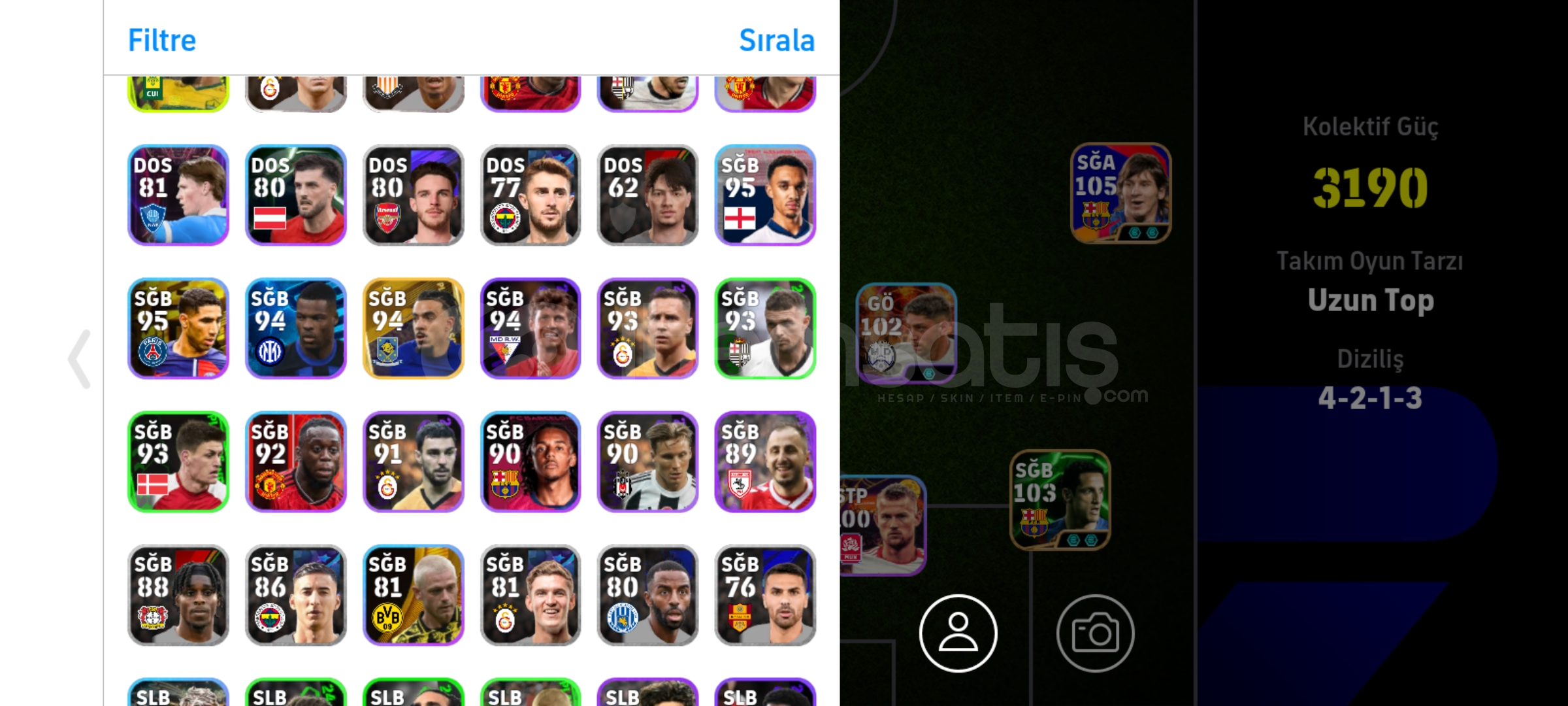 Arkadaşlar bol rezerv vardır epikleri zaten görüyorsunuz anlatmaya gerek yok 104 totti 105 forlan 105 Oliver kahn hesapta toplam 400 oyuncu var bol rezervli TEK BAĞ ALANA HAYIRLI OLSUN HESAPTA -MC YOM 15M GP VARDIR 105 MESSİLİ EFSANE BOMBA HESAP