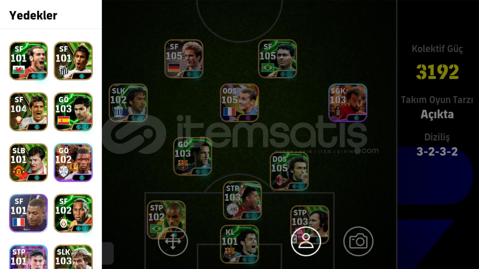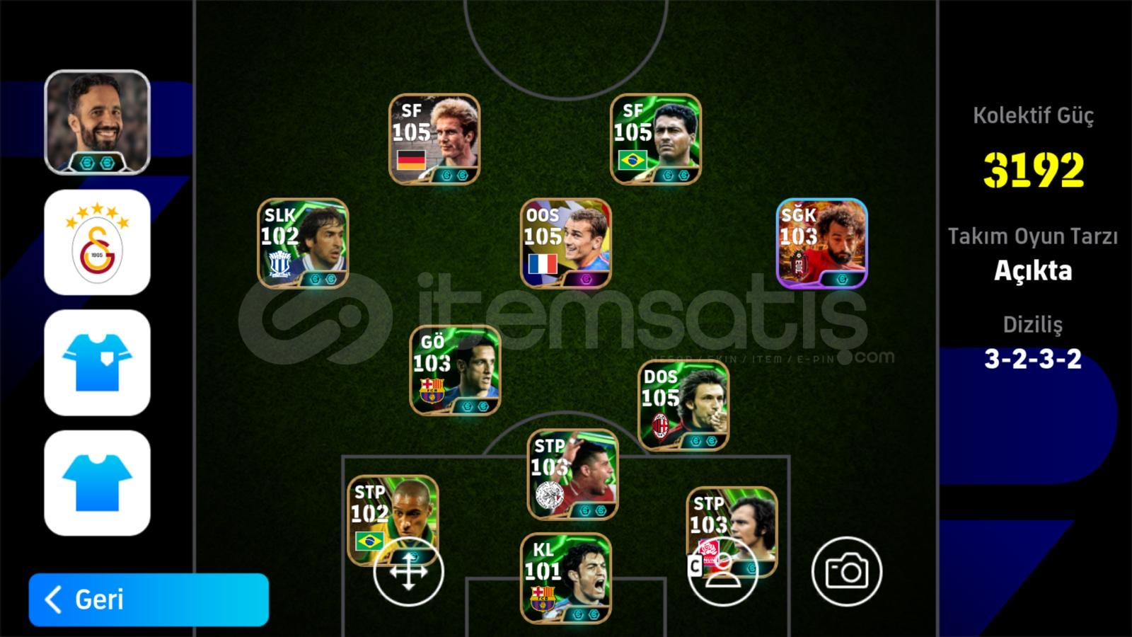 mükkemel bi hesaptır bombacı Salah pirlo vb birçok oyuncu vardır hesap tek bağdır pazarlık payı vardır almak isteyeni boş yollamam alana şimdiden hayırlı uğurlu olsun