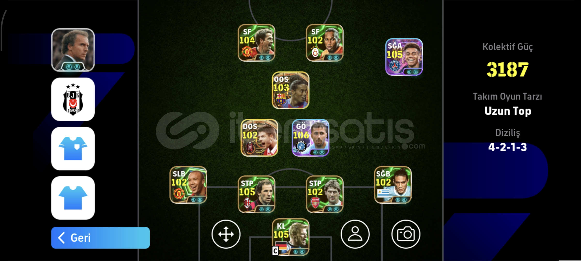 Hesap görüldüğü gibidir orta düzey üstü bir hesapÇok iyi defans var forvetler efsoİndirim olabilir yazabilirsinizYardımcı olurumHesap tek bağ konami idHemen size devir yaparızSıkıntı yapmayın