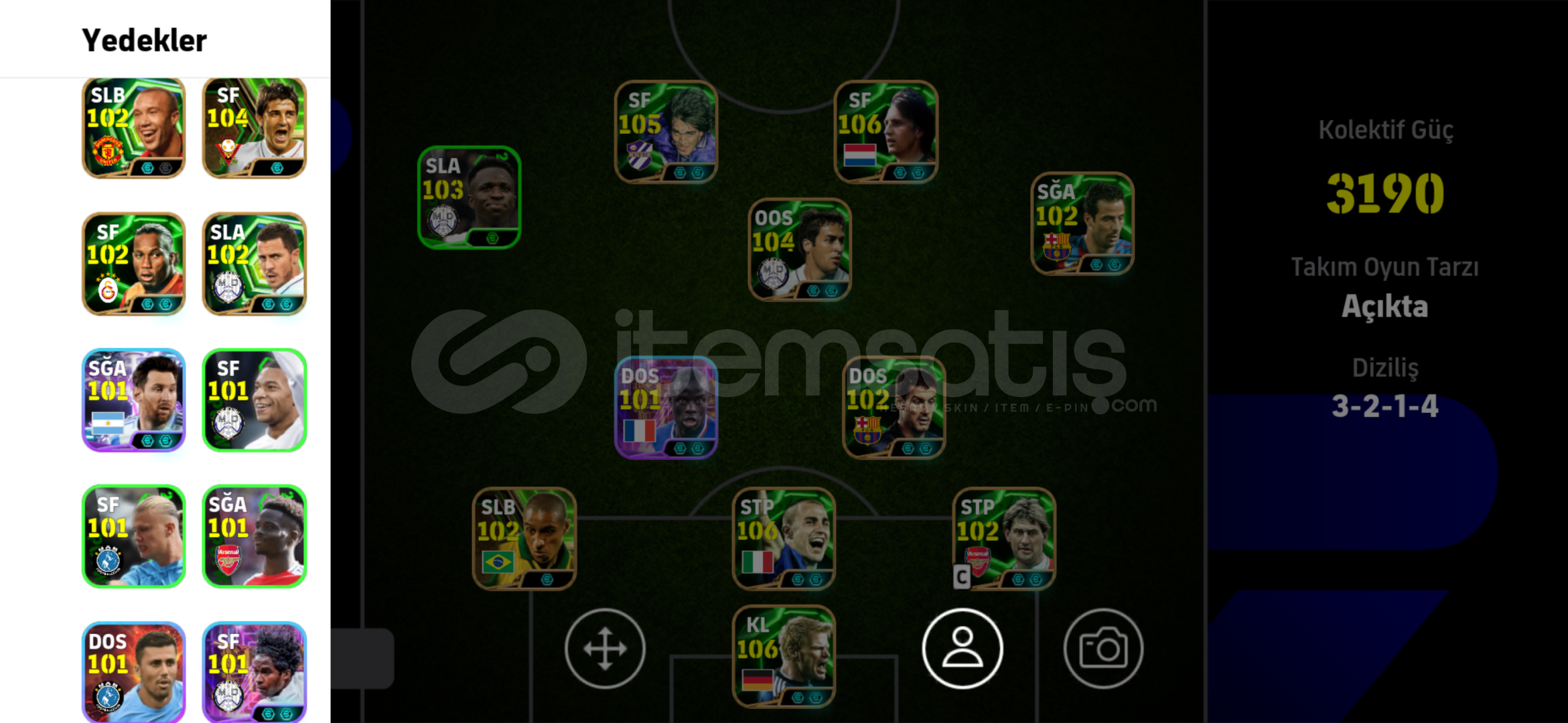 HESAP HAKKINDA: 3190kg Tek bağ(KONAMI ID) efsane hesap!Güçlendiriciler ayarlandıktan sonra 3200+ kg olur! Bol bol Epic, Showtimes, özel menajarler ve sağlam kartlar mevcut!Güzel fiyata efsane hesap çok durmaz kaçırma!106 JOHAN CRUYFF VARDIR106 CANNAVARO VARDIR106 KAHN VARDIR105 GABRİEL BATİSTUTA VARDIR104 ROUL VARDIR104 DAVİD VİLLA VARDIR