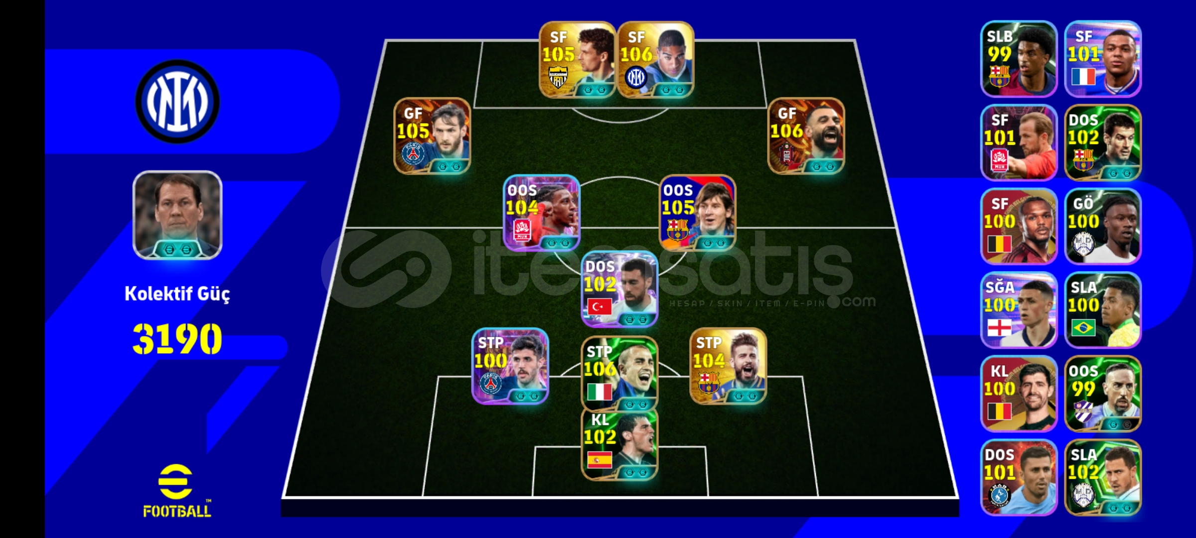3190 KG105 BOMBACI KVARA106 SALAH106 ADRİANO105 BAGGİO104 PİQUE104 OLİSEİOS - ANDROİD TEK BAĞ